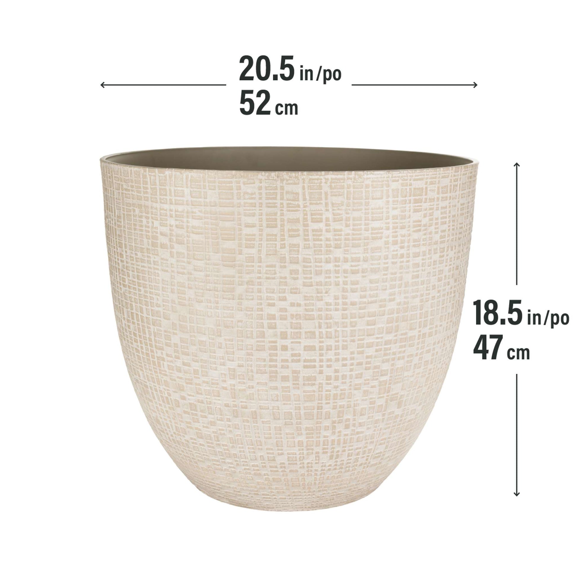 Sublimez vos grands espaces avec la jardinière Riley 20,5 po de Garant. Véritable élément décoratif, ce modèle se distingue par son format généreux qui en fait une pièce maîtresse idéale pour mettre en valeur vos végétaux. Sa texture effet pierre à fines lignes apporte profondeur et raffinement, s’intégrant autant dans des décors modernes que traditionnels.