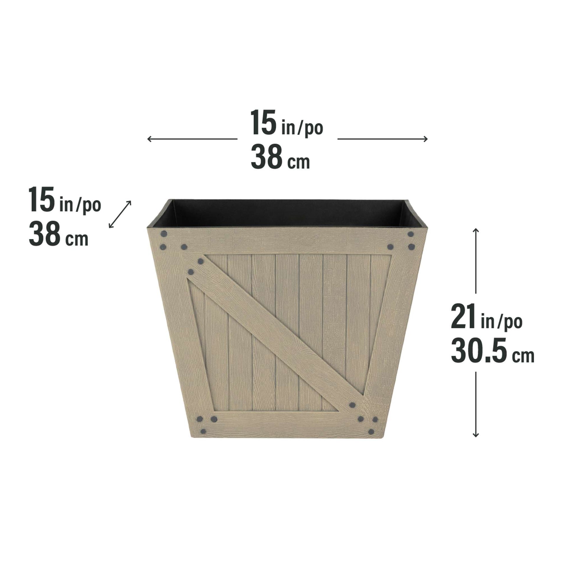 Apportez un charme rustique et chaleureux à vos espaces avec la jardinière carrée 15 po style porte de grange de Garant. Inspirée du style rustique, elle reproduit l’aspect authentique des planches de bois tout en étant fabriquée en résine haute densité. Ce matériau la rend légère, durable et parfaitement adaptée à une utilisation intérieure comme extérieure.