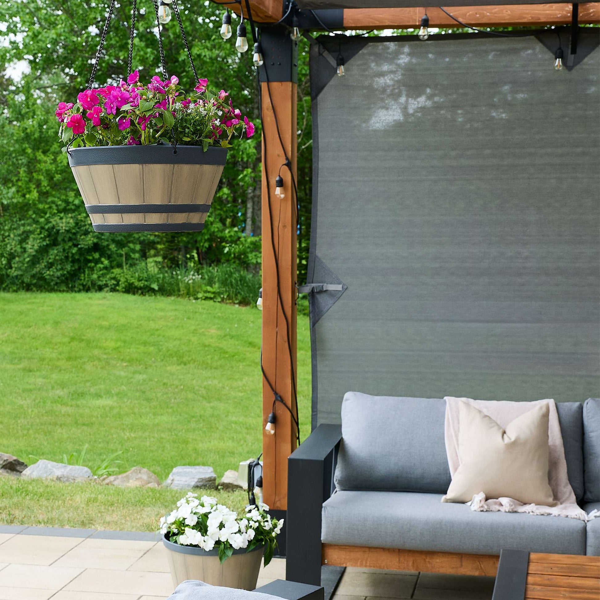 Créez une ambiance chaleureuse et authentique avec la jardinière suspendue Tennessee Whisky 12 po de Garant. Inspirée des barils modernes, elle se distingue par son fini effet bois qui reproduit l’aspect naturel du matériau et souligne son style rustique.