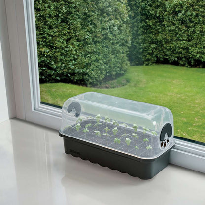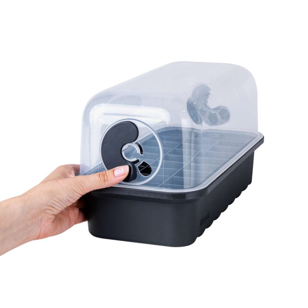 Doté d'un dôme avec système d'aération, il permet de contrôler l'humidité, assurant ainsi une germination plus rapide et efficace de vos semis. Il suffit de fermer les orifices à l'aide de la roulette sur le côté pour offrir plus d'humidité. Au fur et à mesure que les plants grandissent, vous pouvez augmenter la circulation d'air en tournant la roulette. Simple, mais ingénieux.