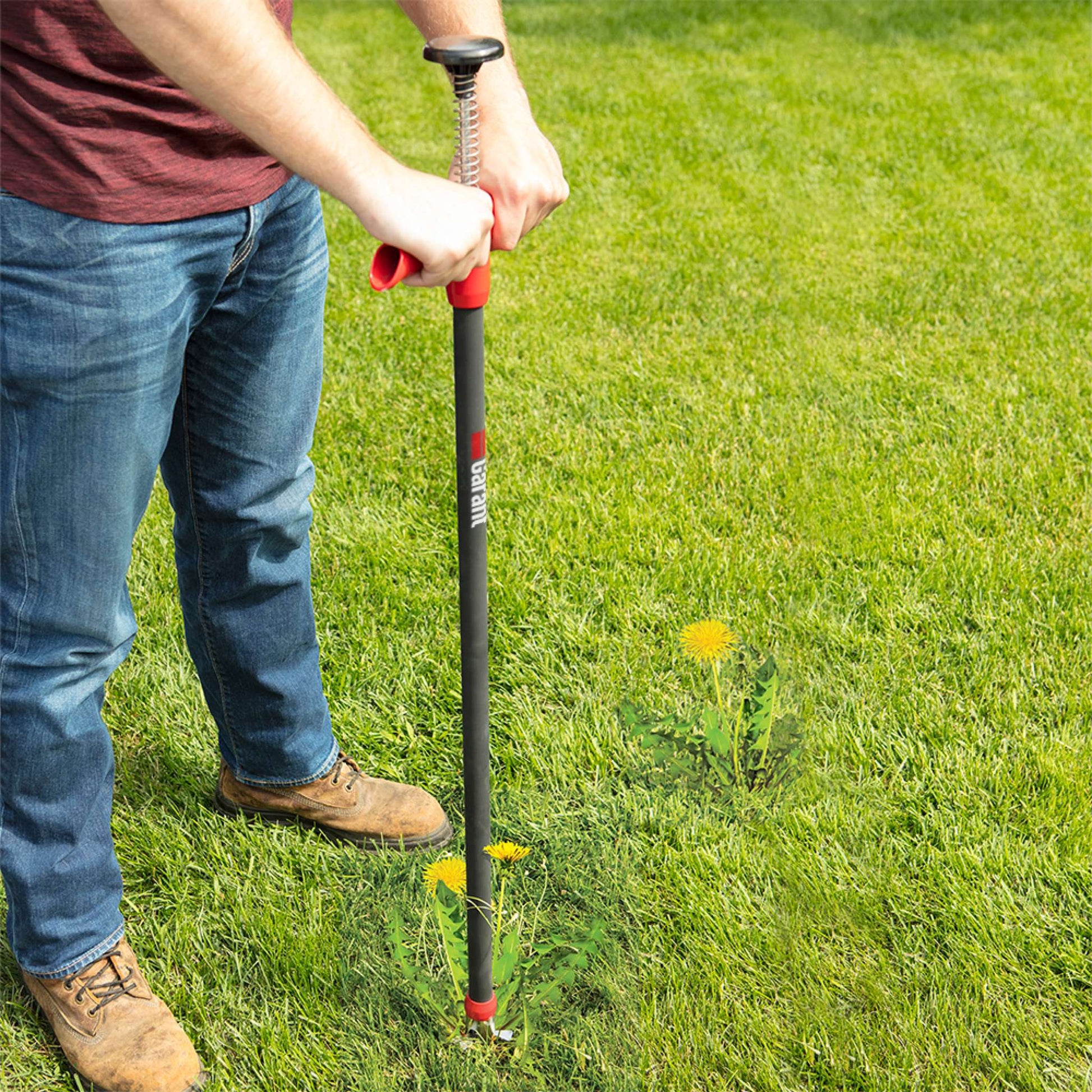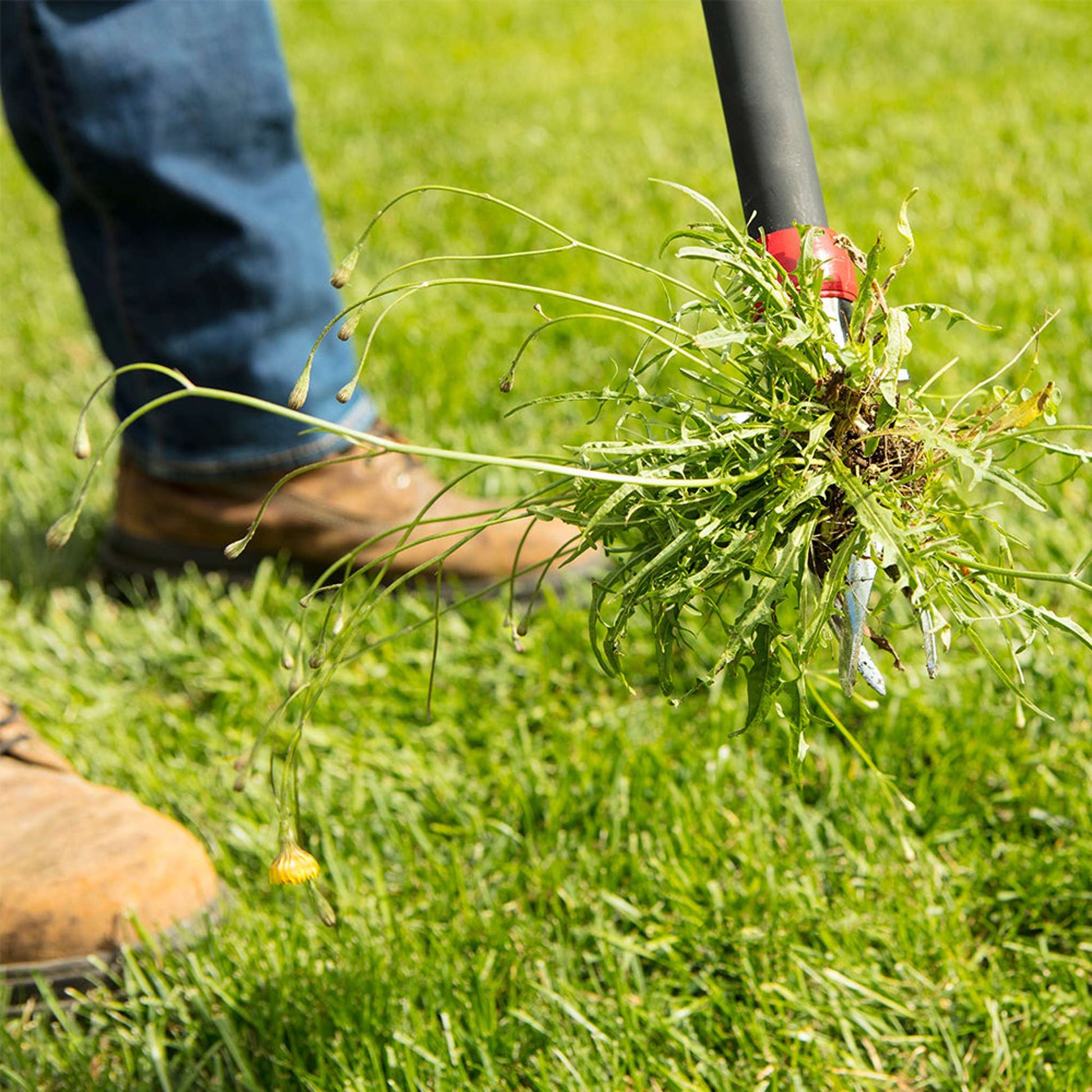 La tête vrillée permet une utilisation de l'outil dans tous les types de sols. Elle capture toute la racine des mauvaises herbes pour empêcher sa repousse. Éjection facile et précise grâce à son bouton d'éjection surdimensionné.