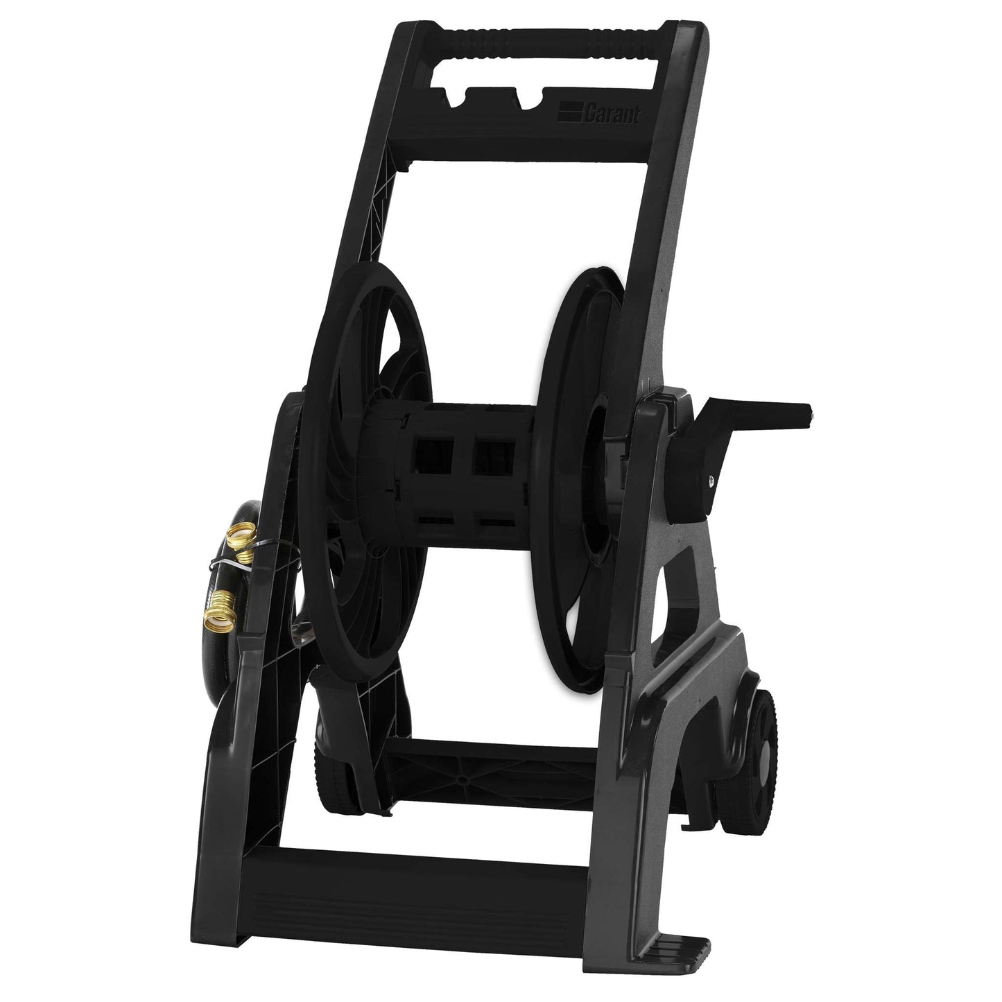 Le chariot-dévidoir pliable Garant peut contenir jusqu'à 175 pi (53 m) de tuyau 5/8 po. Sa construction en poly résistant aux chocs est robuste et durable, en plus d'être anti-fuite, grâce au système d'eau en aluminium NeverLeak". La poignée pliable facilite le rangement, prenant beaucoup moins de place. Il est muni d'un support pour accessoires d'arrosage et de roues de 6 po (15 cm) assurant la stabilité sur toutes les surfaces. Tuyau de raccord de 4 pi (1,2 m) inclus.