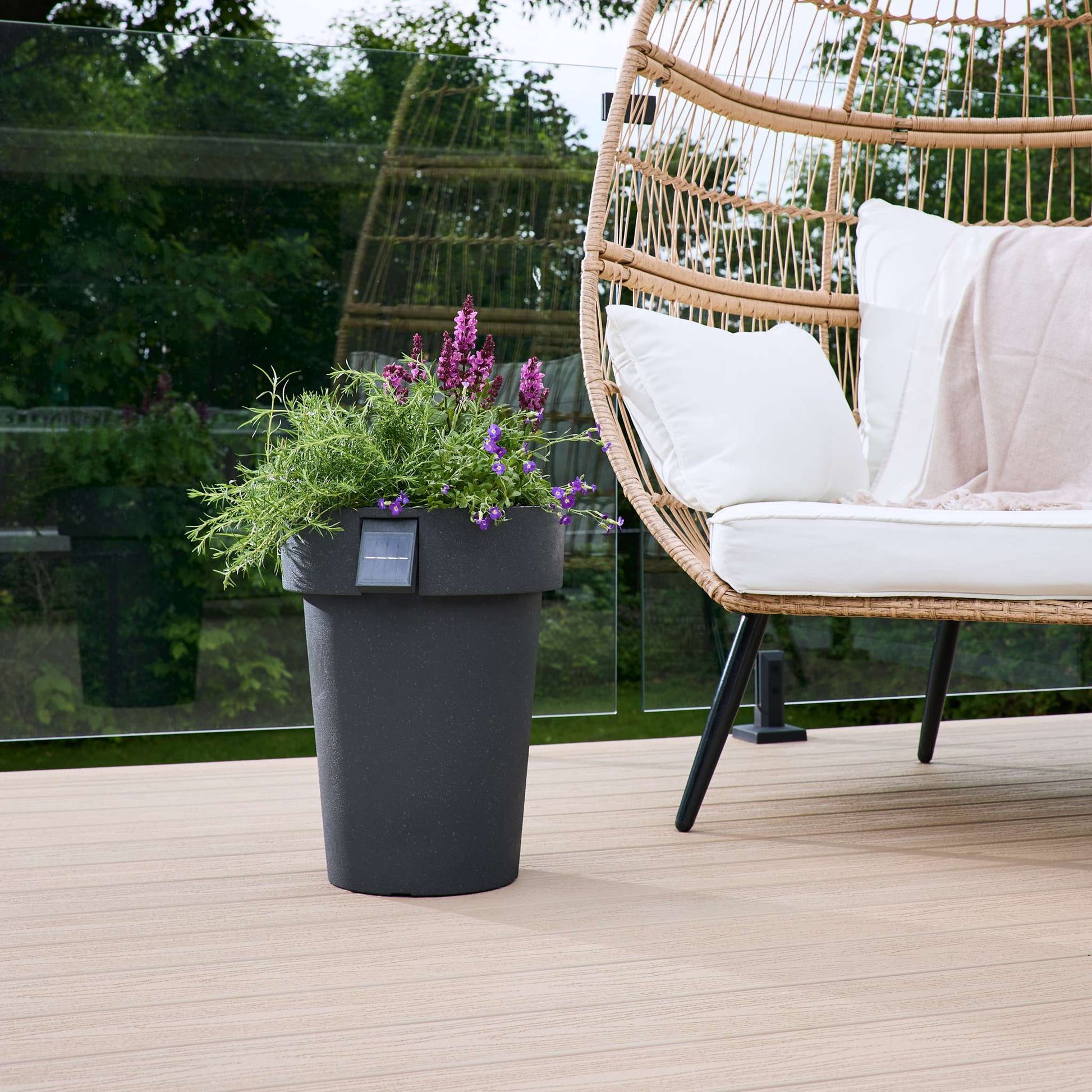 Doté d’une texture inspirée du terrazzo, au grain subtil et contemporain, il s’intègre parfaitement à tout type d’aménagement extérieur. Sa construction en résine durable et résistante aux intempéries garantit une fiabilité saison après saison. Créez une ambiance relaxante tout en mettant vos plantations en valeur : choisissez le pot solaire Garant pour un mariage parfait entre durabilité, praticité et élégance.