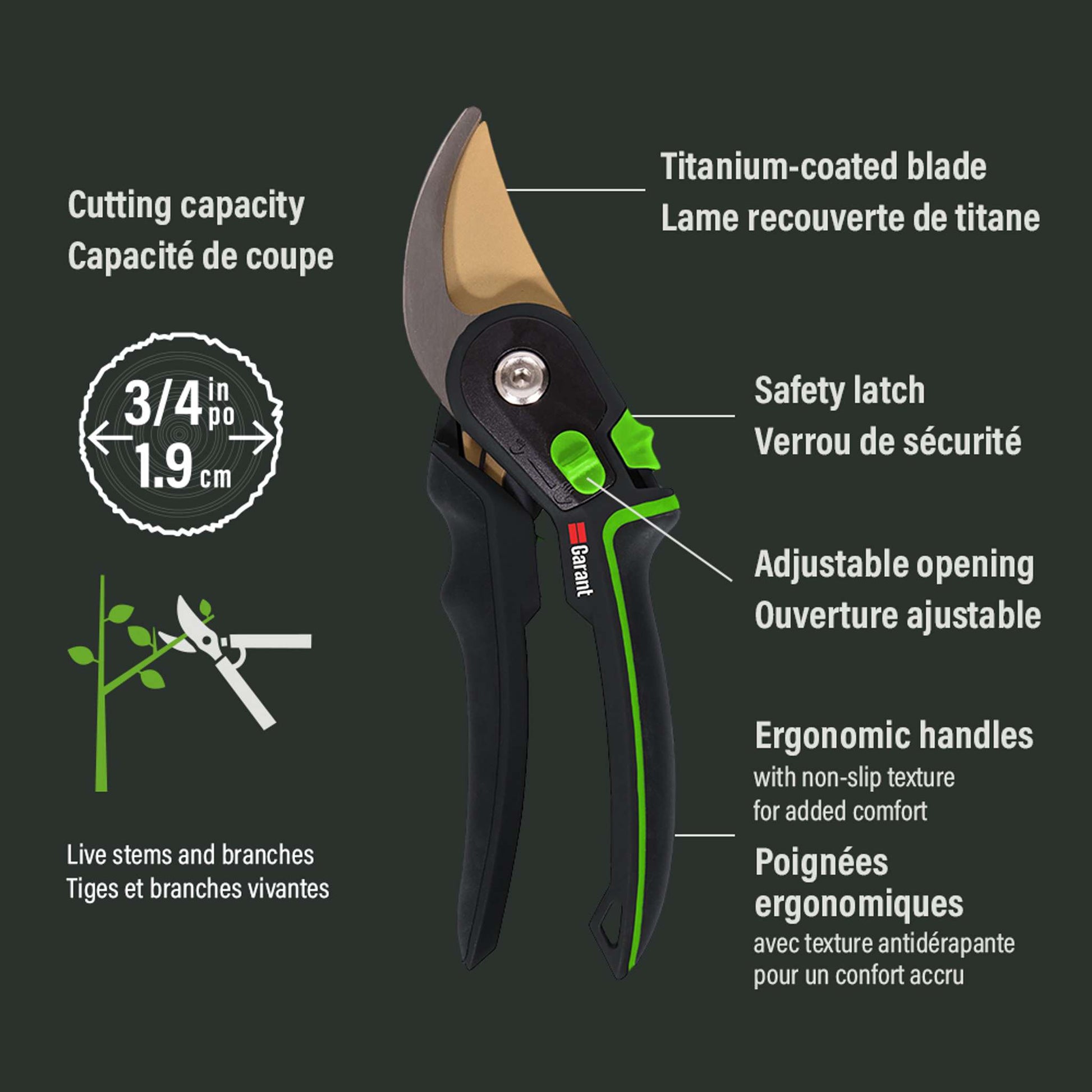 Idéal pour tailler les tiges et les branches vivantes, ce sécateur à contre-lame Garant est fait de matériaux de haute qualité pour une meilleure action de coupe et des plantes plus saines. Ce modèle permet de couper les tiges vivantes d’un diamètre maximal de 1,5 cm (1/2 po).