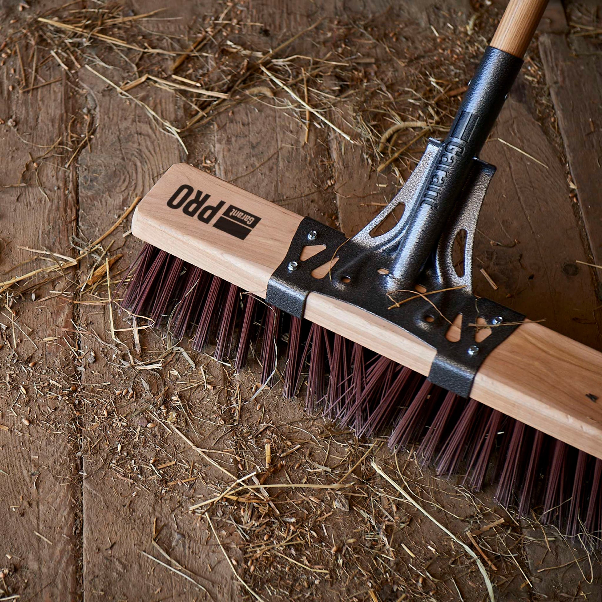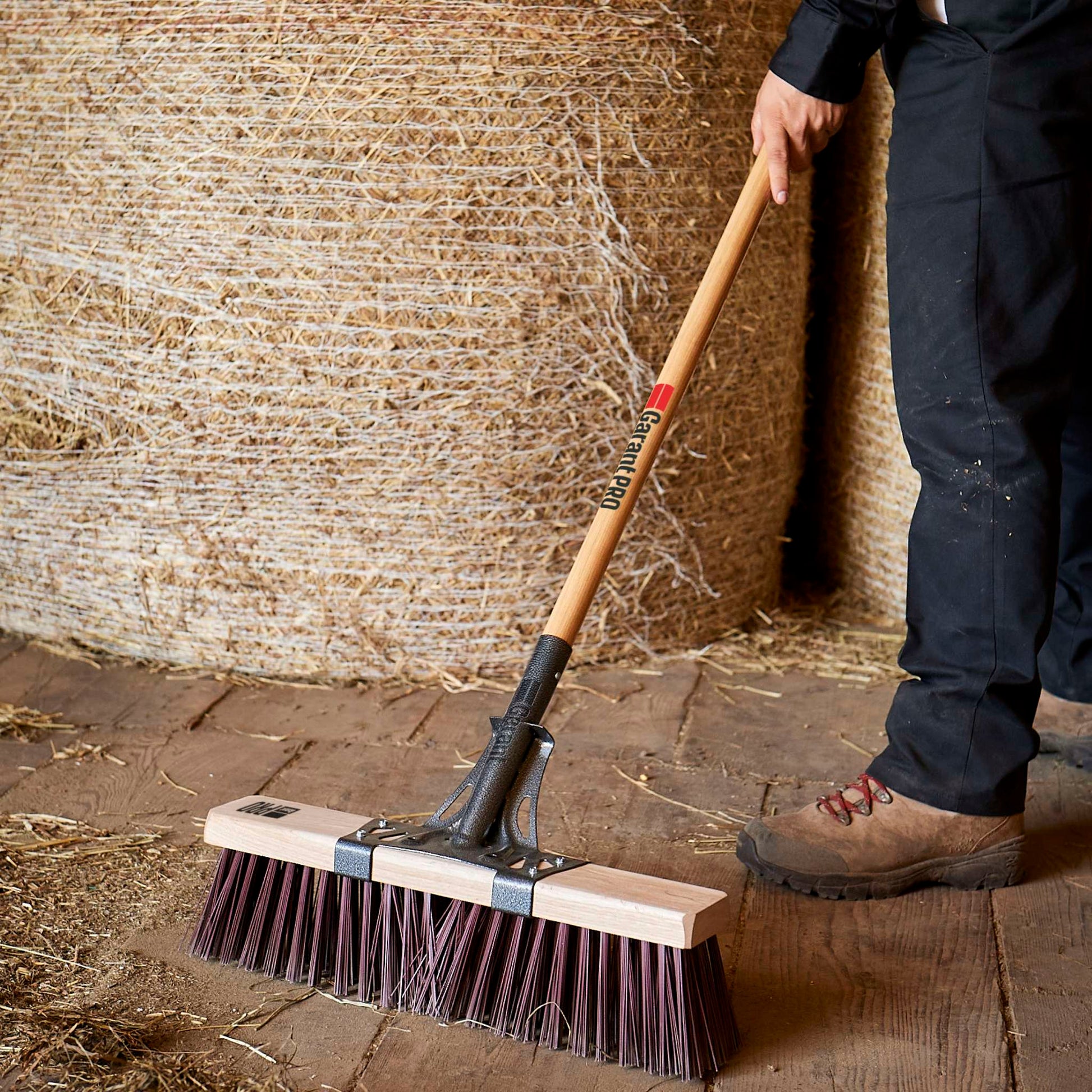 Balai de rue/d'étable de qualité industrielle pour surfaces extra-rugueuses. Brosse de fibres synthétiques d'une largeur de 16 po. Attachement d'acier trempé et soudé pour plus de robustesse. Manche en bois dur verni de première qualité (1-1/8po x 60po). Parfait pour le balayage de gros débris. Garantie à vie limitée.