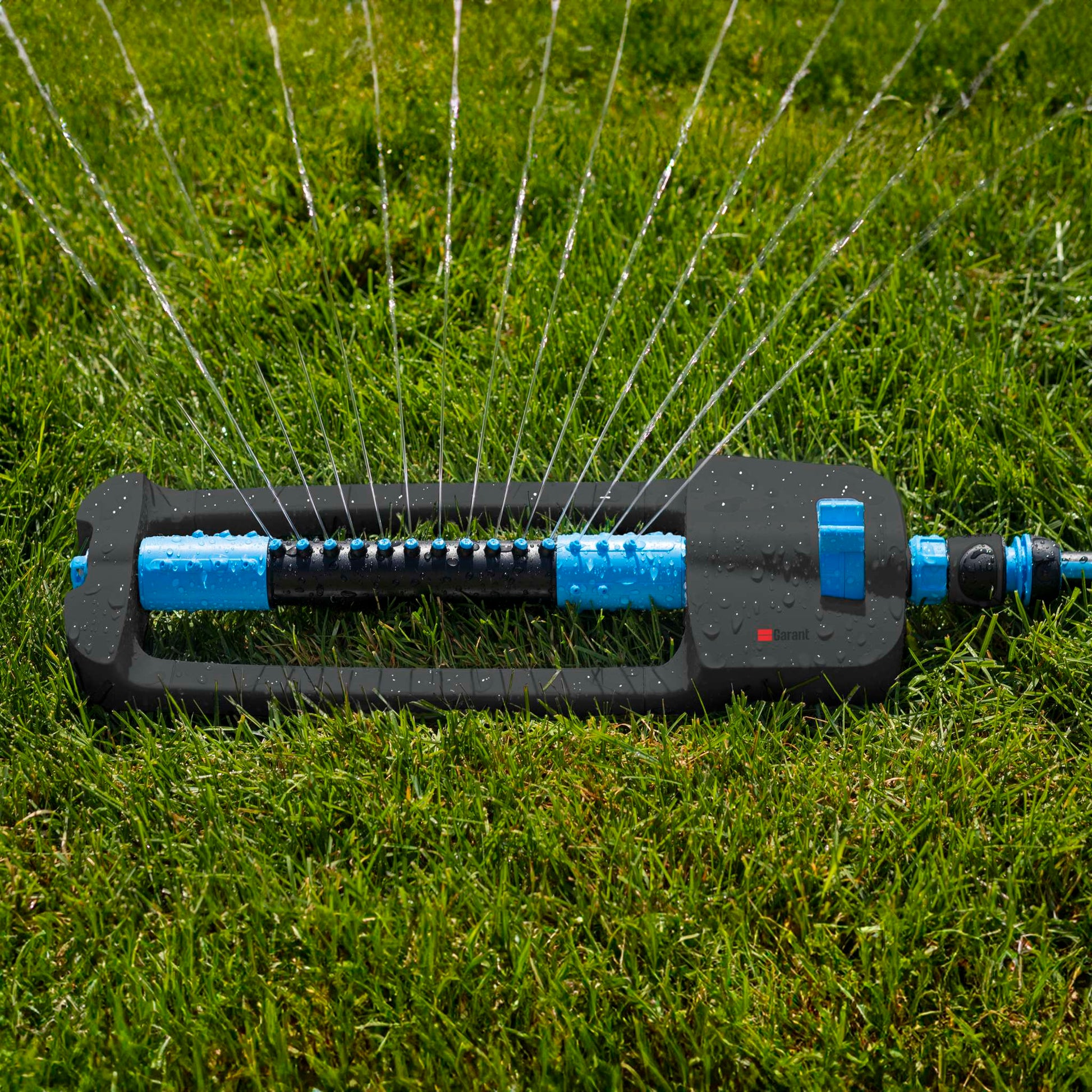 The Garant Flexi-Jet Premium Oscillating Sprinkler is ideal for watering various rectangular areas up to 3475 sq. ft. Length and width are easily adjustable according to the area to be watered. The built-in nozzle cleaning tool ensures the nozzles are clog-free for optimal watering. *Garant is compatible with all your other quick connect accessories.