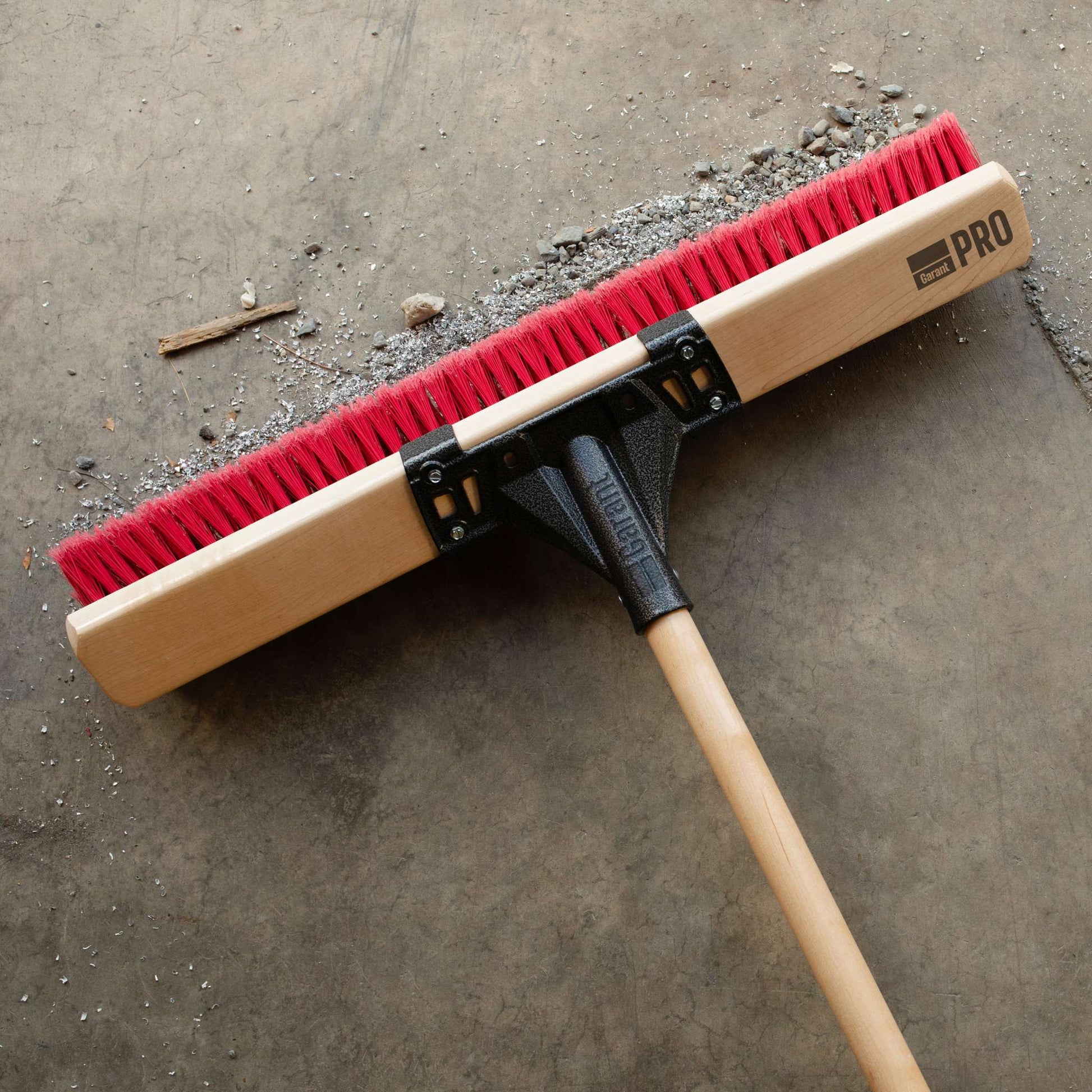 Sweep up medium sized debris with the help of the Garant Pro Series multi-surface push broom. This tool is equipped with a 24\" (61cm) broom that is attached to an ultra-robust tempered steel attachement for maximum robustness. This industrial-quality push broom is especially designed for professionals looking for a robust, reliable and efficient tool to complete various cleaning projects.