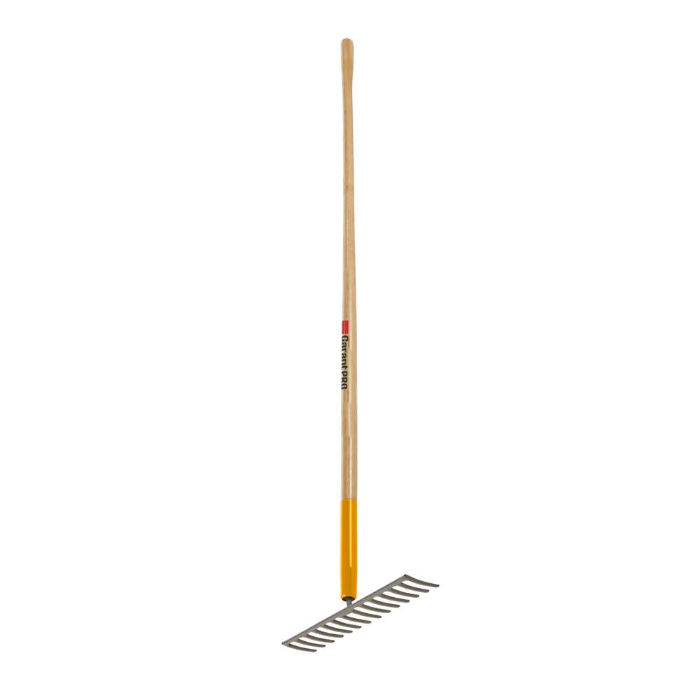 Spread dirt and level the ground in your garden, flower beds and other areas with the help of the Garant Pro level rake. This tool has 16 tines and is equipped with a tempered steel head. Its straight head allows for excellent finishing touches. This industrial-grade level rake is especially designed for professionals looking for an robust, reliable and efficient tool.