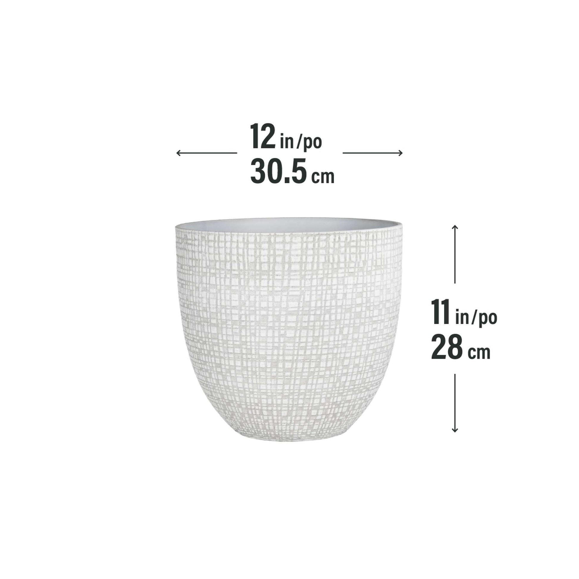 This piece, made of high-density resin, is lightweight, durable and built to withstand the elements from one season to the next. The 12-inch diameter makes this versatile planter ideal for flowers, plants or decorative arrangements in the living room, on a balcony, patio or in the garden.