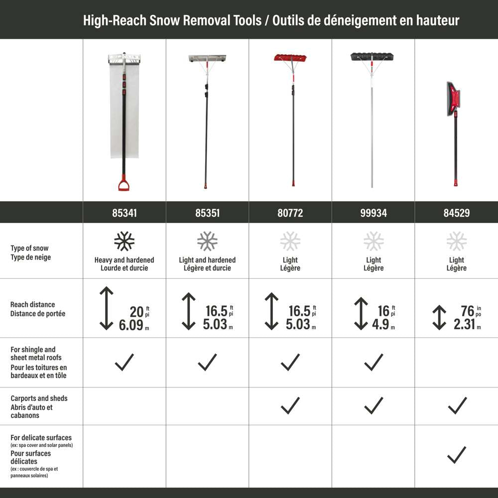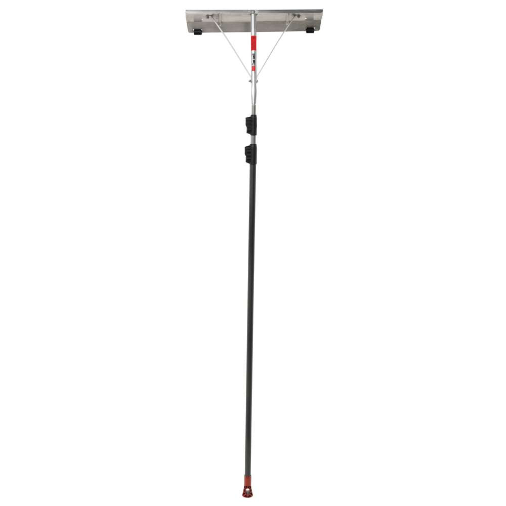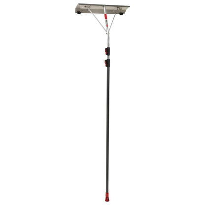 The Garant 16 1/2-foot roof rake makes your job easier. The 24-inch aluminum head and protective pads protect the surface. The telescopic handle, equipped with push buttons and a knob, is non-slip and lightweight. This tool is ideal for low, medium and steep slopes. Use on light to hardened snow.