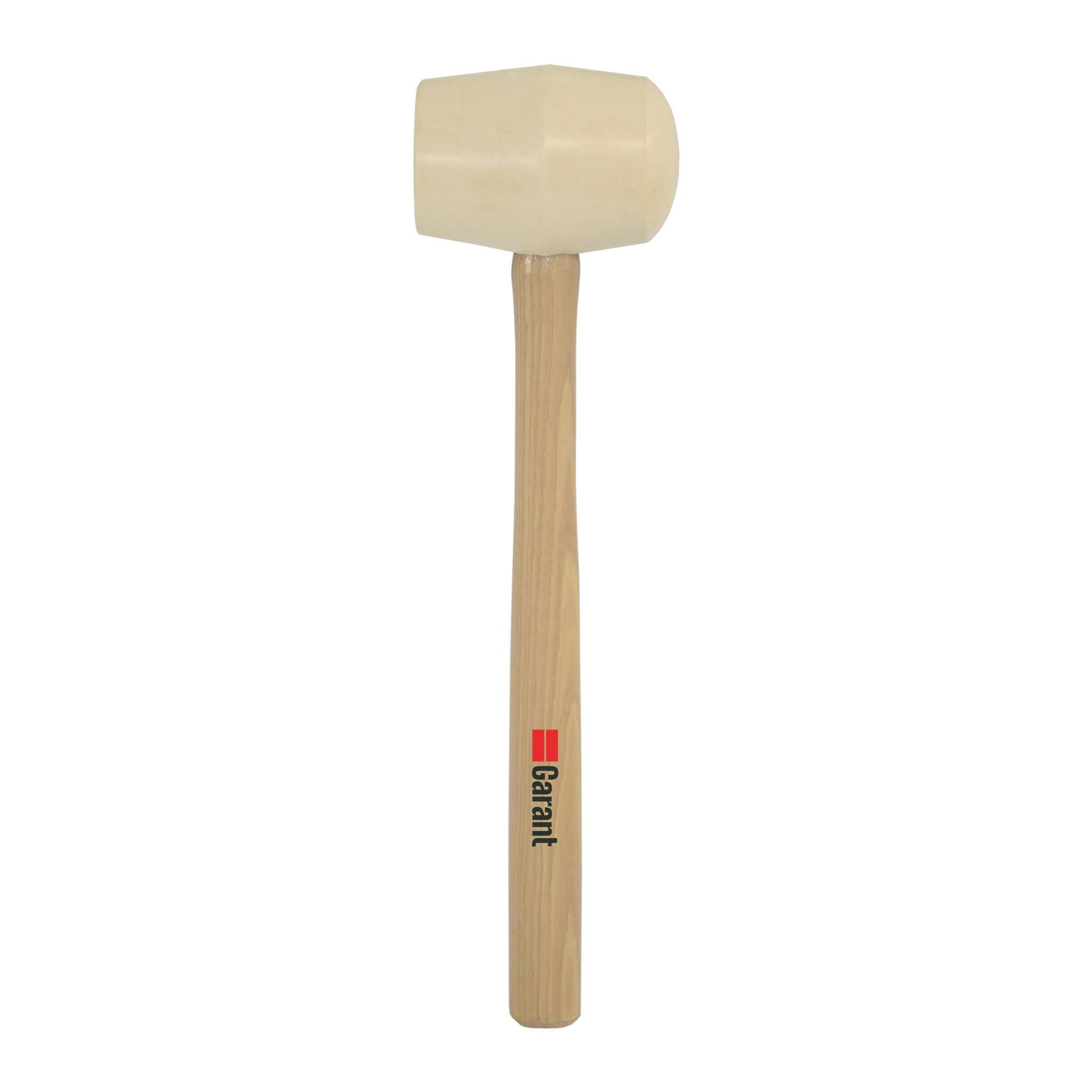 Hit and position various types of materials with the Garant rubber mallet. This striking tool has a 28 oz head made of white rubber. Its 16-inch (40.64 cm) varnished hickory handle has a clip to hang the tool. Ideal for finishing work on cars, furniture in a factory or at home.