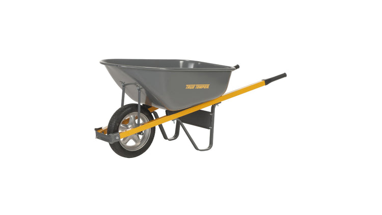 Transport dirt, mulch, gravel, tools and other materials easily with the True Temper contractor wheelbarrow. Its 6 cu ft tray with a maximum capacity of 270lb (122.5kg) is made of a single piece of thick steel with steel front tray braces. It has 60 inch (152.4cm) ultra-robust steel handles with comfort grip and one 16 inch (40.6cm) sport flat-free tire. This ultra-robust True Temper wheelbarrow is designed for homeowners, landscapers anhttps://v2.langify-app.com/collections/2105607#d construction workers who require moving heavy loads.