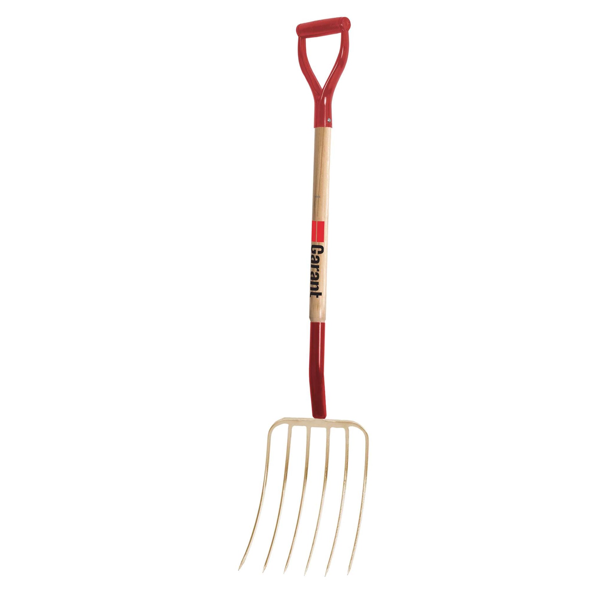 Lift, move and mix fertilizer, manure or compost with the help of the Garant manure fork. This tool is equipped with an ultra-robust head made of a single piece of forged and tempered steel. Its 6, 13\" (33 cm) tines are sharp and narrow for better manipulation of the manure. This fork is designed especially for farmers looking for a robust, efficient and comfortable tool.