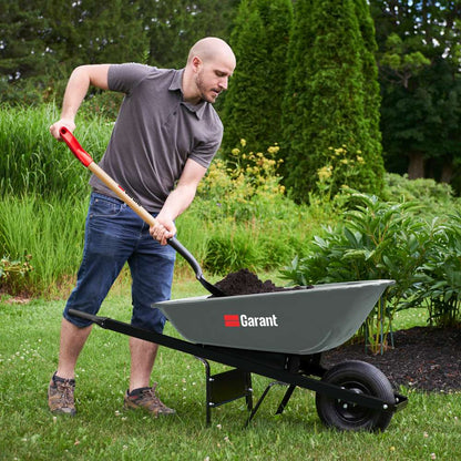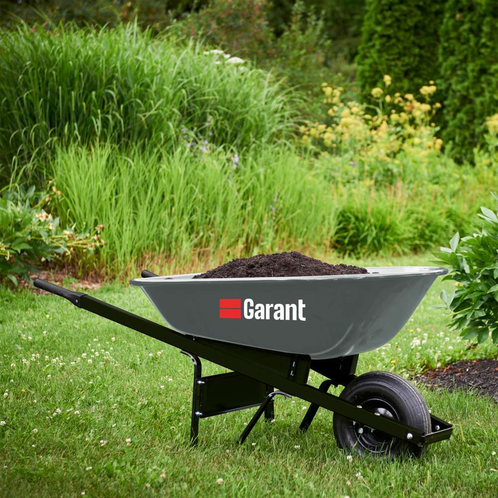 The Garant Gardening Wheelbarrow is specially designed to meet all your landscaping and gardening needs. Thanks to its sturdy materials and quality components, this wheelbarrow is the perfect companion for your projects, whether you need to transport soil, gravel or your work tools. Featuring a sturdy 5-cubic-foot steel tray, this wheelbarrow is perfect for hauling loads. Its durable steel design is ideal for all projects, allowing you to move large quantities of soil, gravel or other materials. Steel handles are designed for stability and strength. Whether you're transporting light or heavy loads, these handles guarantee optimum control and strength. The Garant wheelbarrow is equipped with a 13” pneumatic wheel for excellent maneuverability on any surface. This wheel makes it easy to move over a variety of terrains, whether smooth, sloping or uneven. Add this reliable, robust wheelbarrow to your equipment today and discover how it can simplify your landscaping or gardening projects. Garant, your solid ally for all types of project.