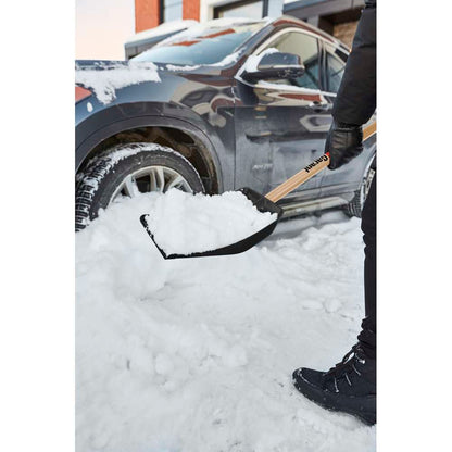 Easily store this Garant shovel in the trunk of your car to have when bad winter weather occurs. This tool represents good quality at a competitive price. This snow shovel is equipped with a polyethylene blade and a hardwood handle. It is a resistant and practical tool!