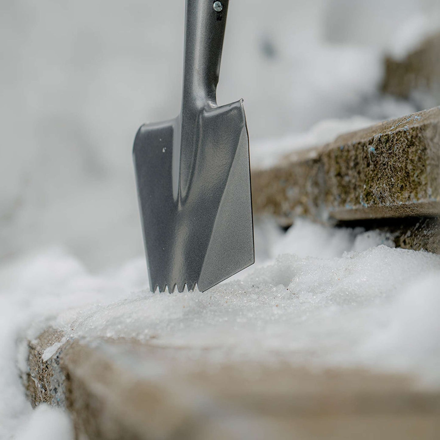 - 7-inch tempered steel blade with sharp teeth designed to break through ice and hardened snow quickly.