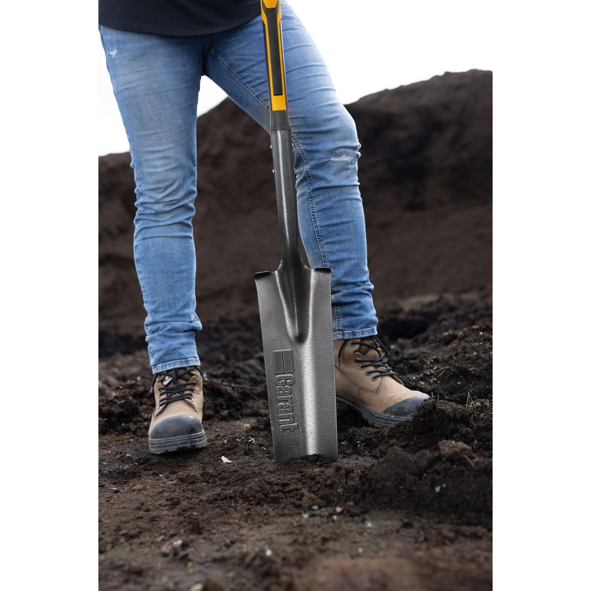 Create small drains or install an irrigation system with the Garant Pro drain spade made of engineered materials. This tool is equipped with a 16\" (40.6 cm) tempered steel blade and a footstep for more power and security. This industrial-grade drain spade is designed especially for professionals looking for a robust, powerful and comfortable tool to take on various landscaping projects.