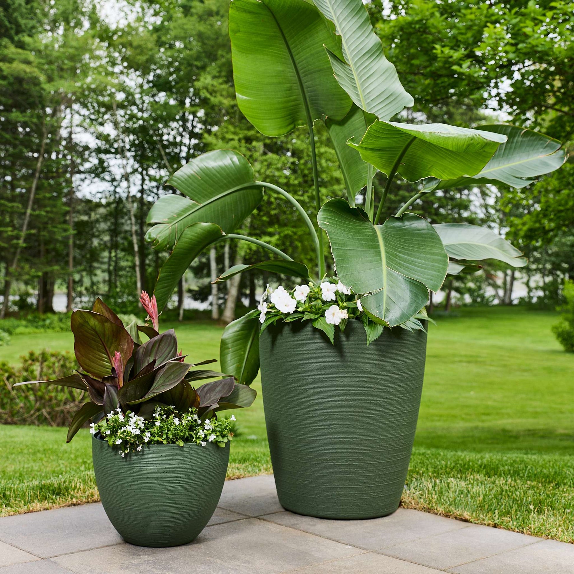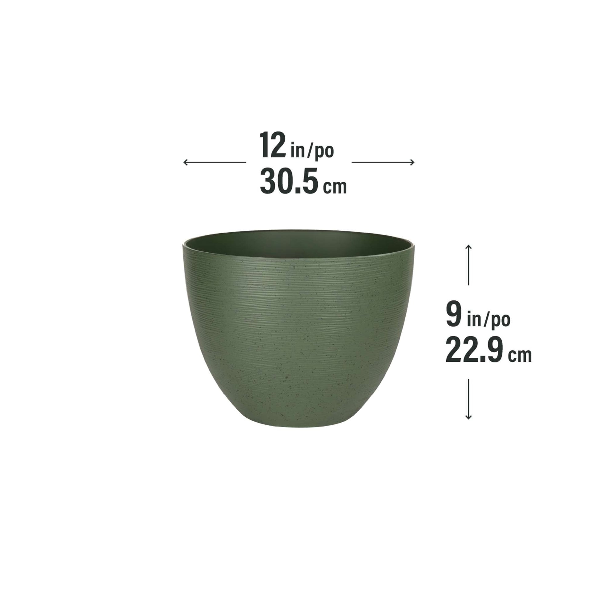 The 12\" Momoka planter from Garant is perfect for showcasing your flowers and plants, indoors or outdoors. Made of high-density resin, it’s lightweight, durable and built to withstand the elements, from one season to the next. Its stone-texture finish adds a natural, contemporary look that complements any décor, from classic to modern. The compact yet versatile size – 9\" high and 12\" wide – makes this an easy fit for a living room, balcony, patio or garden. The 12\" Momoka planter combines style and functionality, to enhance your layout while adding charm to your space.