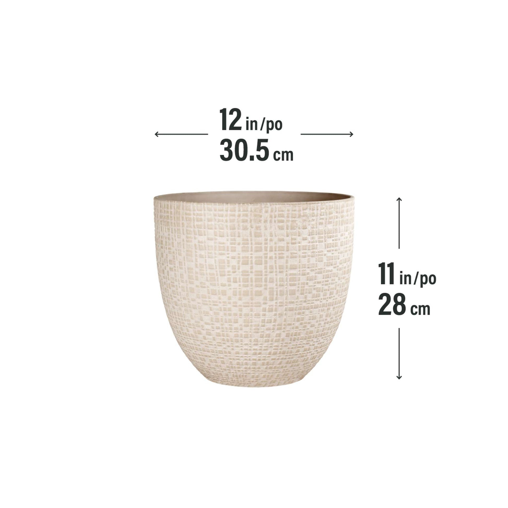 This piece, made of high-density resin, is lightweight, durable and built to withstand the elements from one season to the next. The 12-inch diameter makes this versatile planter ideal for flowers, plants or decorative arrangements in the living room, on a balcony, patio or in the garden.