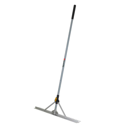 The Garant Pro level rake with folding head is perfect for all your landscaping jobs. Its 36-inch head is lightweight and made of aluminum. An opening button, and its non-slip, fiberglass-reinforced nylon grip, make it easy to open and close the rake's head. Double aluminum reinforced braces ensure optimum head strength. The rake's handle features a non-slip comfort grip for added comfort and grip throughout your landscaping work. The folding head is ideal for storing or transporting this rake in any vehicle.
