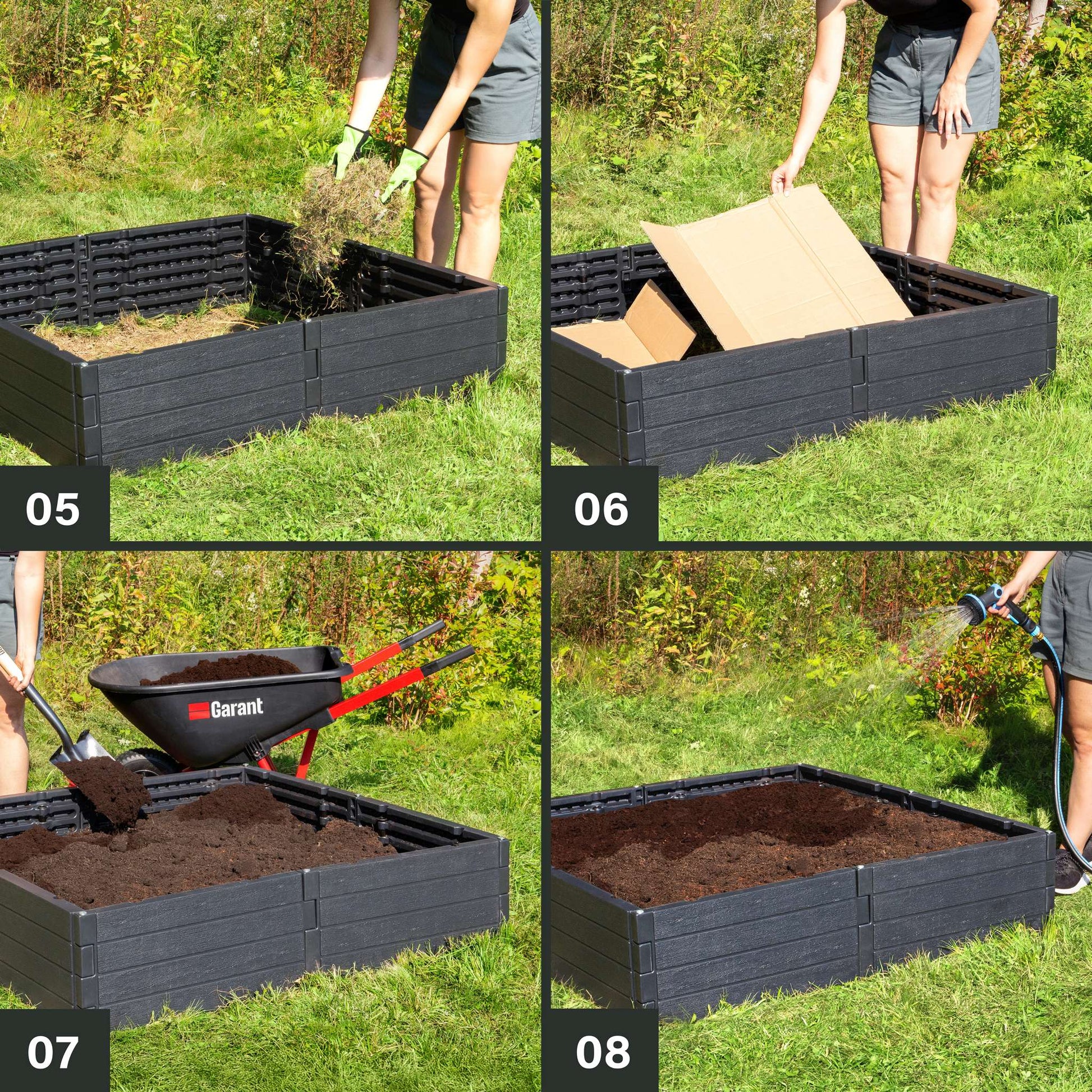 Customize your gardening space by adding other sets, allowing for a variety of layouts. Installation is quick and easy: assemble your modular garden bed in four easy steps with a hammer or sledgehammer.