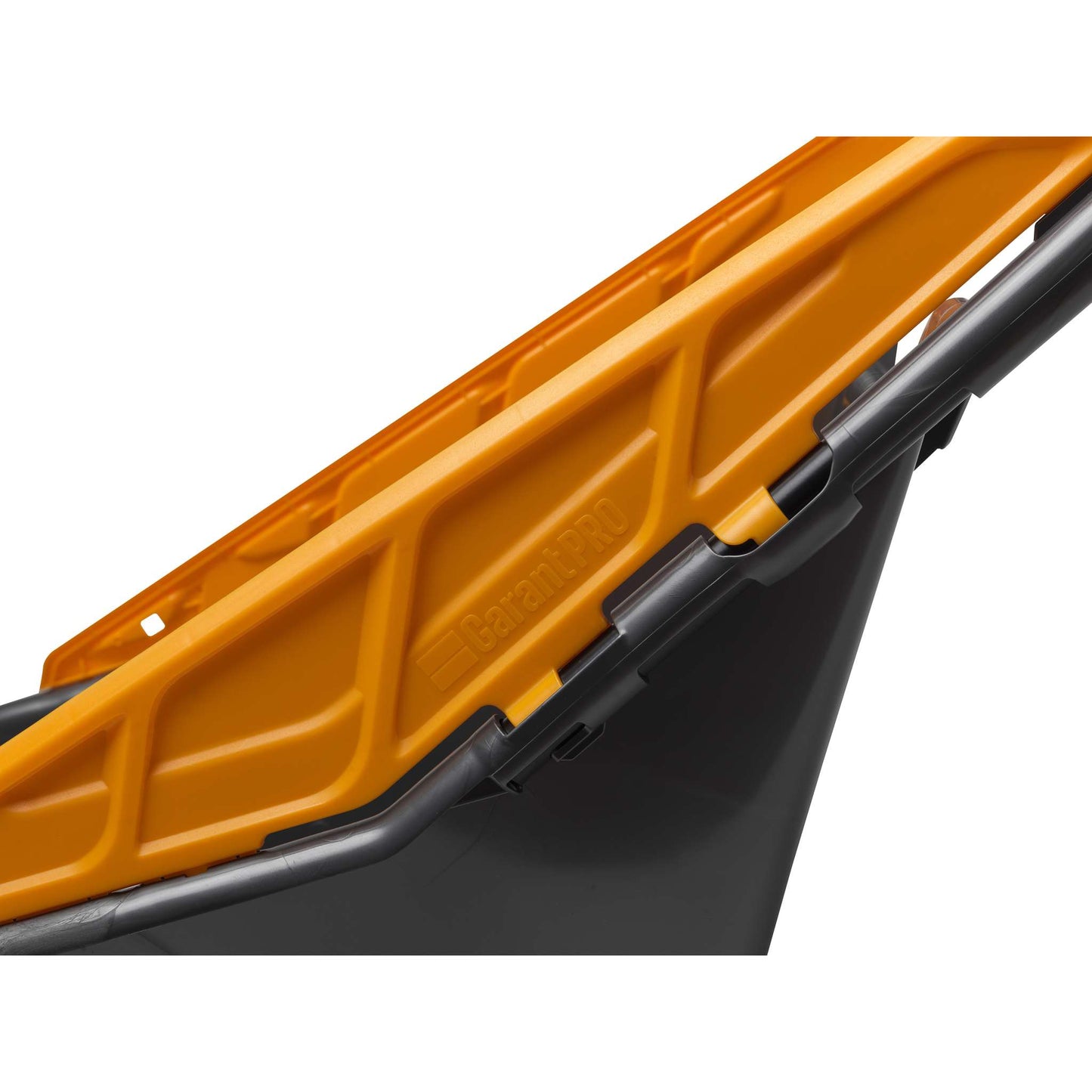 Confront harsh winters with the Garant sleigh shovel with side panels, designed for professionals and perfect for clearing heavy snowfall. Engineered to maximize your efficiency, this shovel features an extra-wide poly blade reinforced with a galvanized steel wear strip, allowing you to scoop large amounts of snow with each push. Its ergonomic design ensures optimal comfort during use. The steel handle provides a solid grip and maximum stability, even when moving large quantities of snow. Thanks to its side panels, this shovel can reach a capacity of 90 L, making snow removal quick and efficient. Robust footsteps allow for powerful pushing, while the reinforced handle structure ensures increased durability, even in the harshest winter conditions. Tested and approved by professionals, this snow sleigh shovel is perfect for professional use. Its ergonomic elements, including the blade and handle with an anti-wear strip, are designed to last and perform in the toughest conditions. Don't let heavy snowfall disrupt your winter. Garant, your solid ally, to face the cold season with confidence.