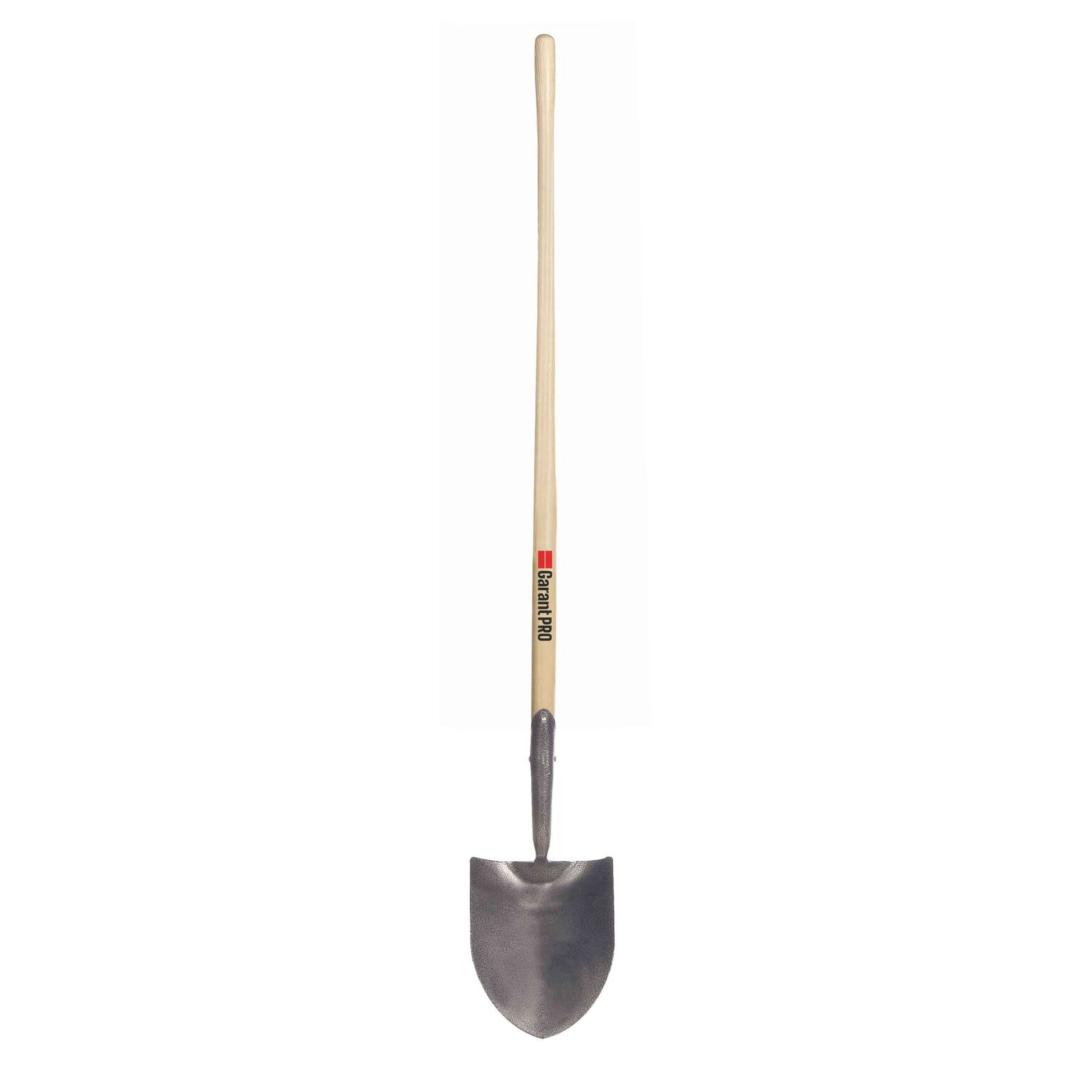 Round point shovel, long wood handle