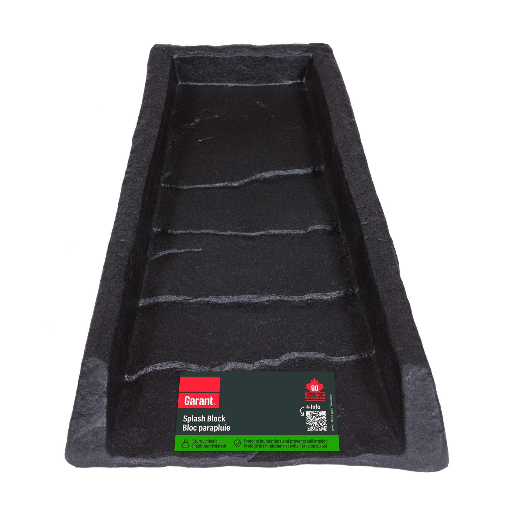 The splash block will prevent soil erosion and foundation damages caused by water runoff. Its stone-like texture will blend in seamlessly with your home. Made of rugged poly composite, it won’t chip or crack like concrete and will keep its natural slate appearance for years.