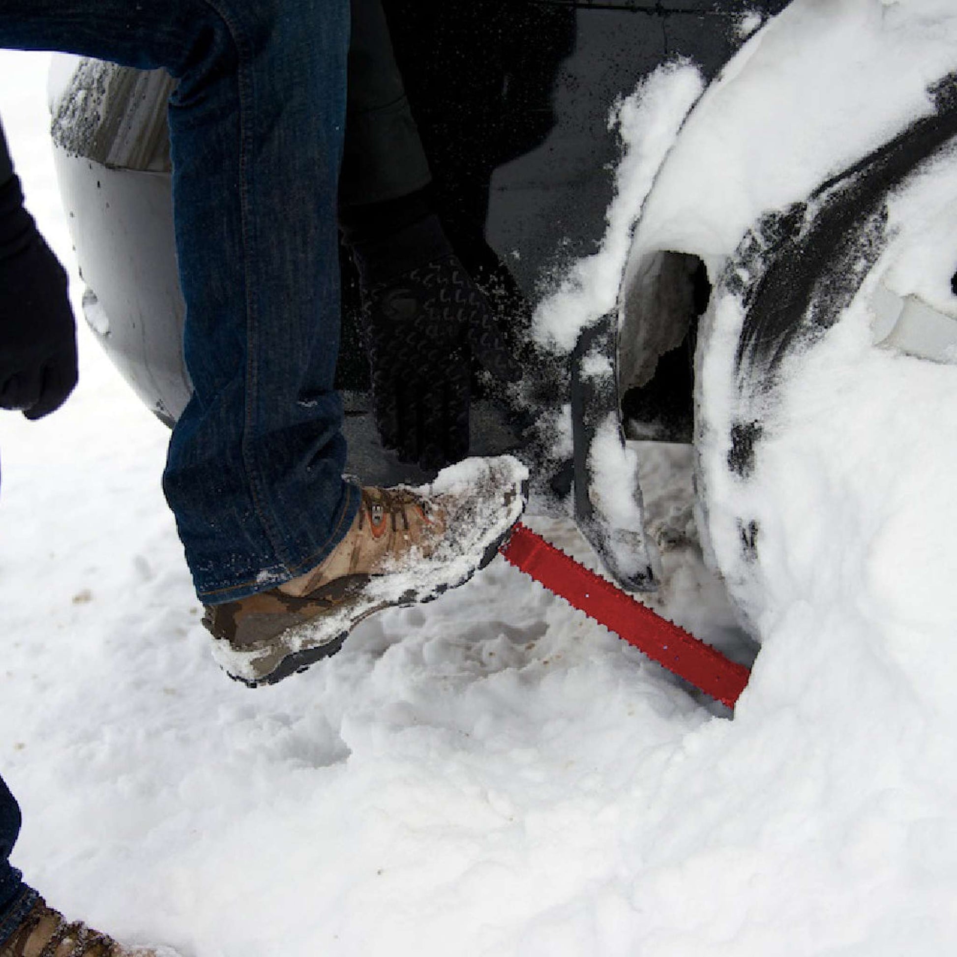 - Provides instant surface traction on slippery ice, snow, mud, or sand