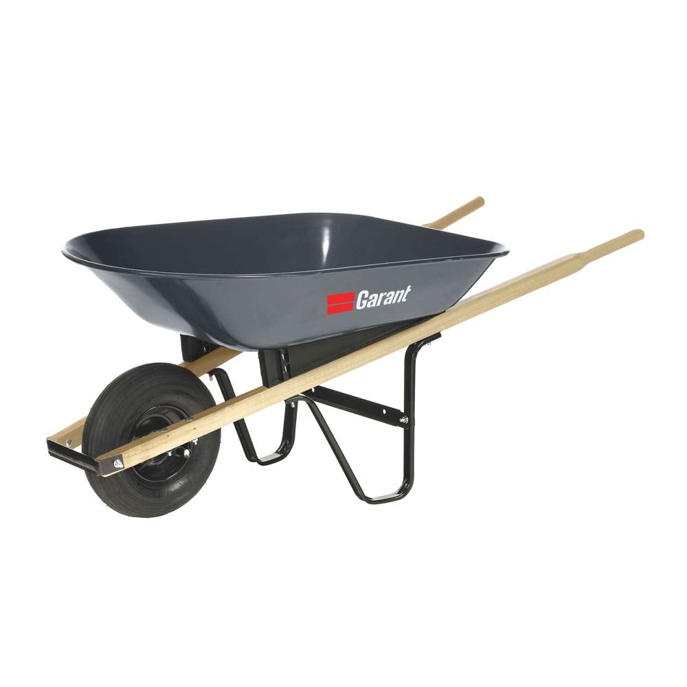 Transport dirt, mulch, gravel, tools and other materials with the help of the wheelbarrow. Its 4 cu ft tray with a maximum capacity of 160lb (75.2kg) is made of a single piece of steel with easy to assemble front plastic tray braces. It has square 55 inch (139.7cm) wood handles, one 13.25 inch (33.65) pneumatic 2 ply tire with nylon bushing. Small enough for it to be easy to use but big enough to get the work done. This wheelbarrow for gardeners was designed especially for domestic use.