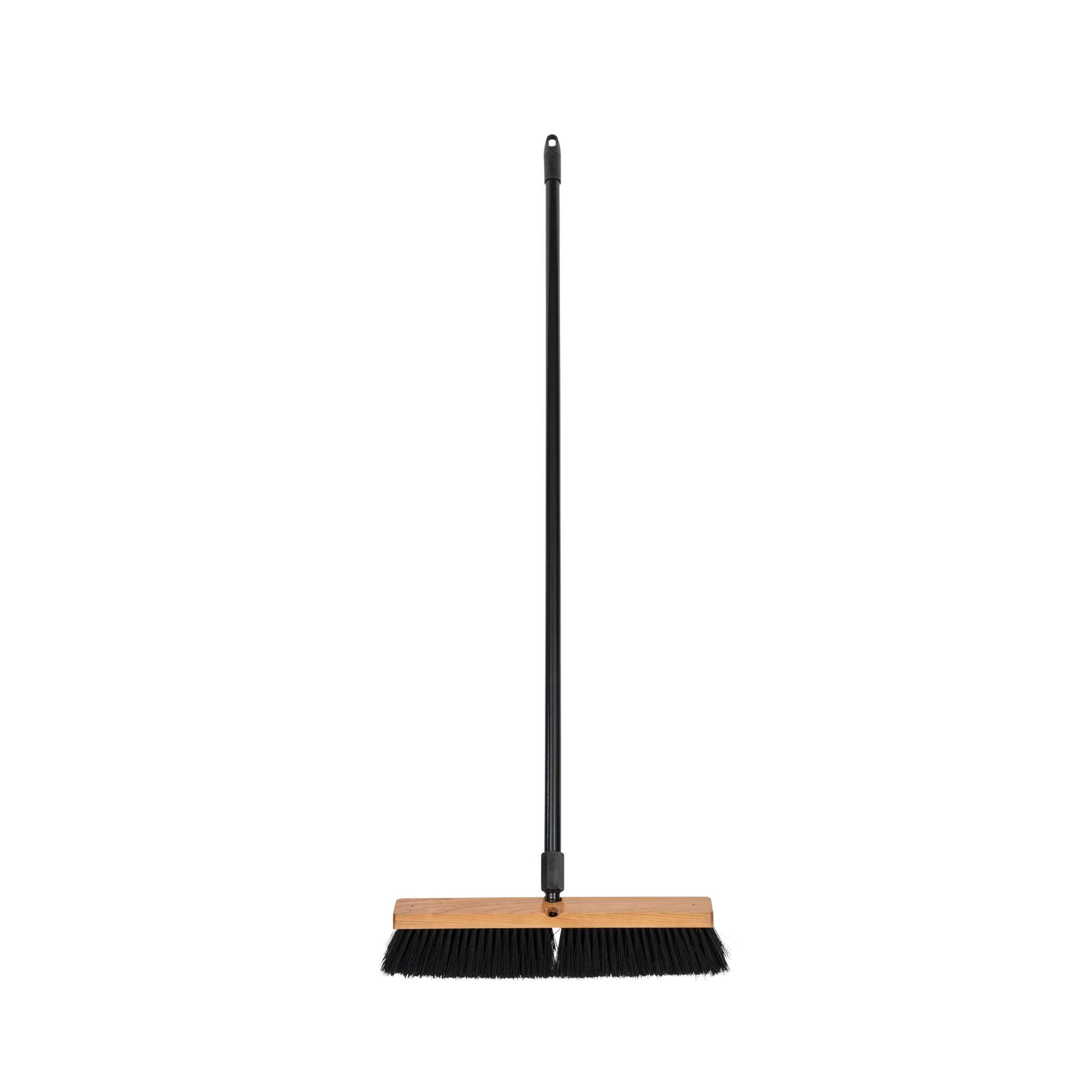 Balai-brosse 18 po multisurface. Utilisation intérieure et extérieure. Manche d'acier avec embout à pivot pour le rangement du balai. Parfait pour les planchers de garages, entrées, patios, trottoirs et terrasses.