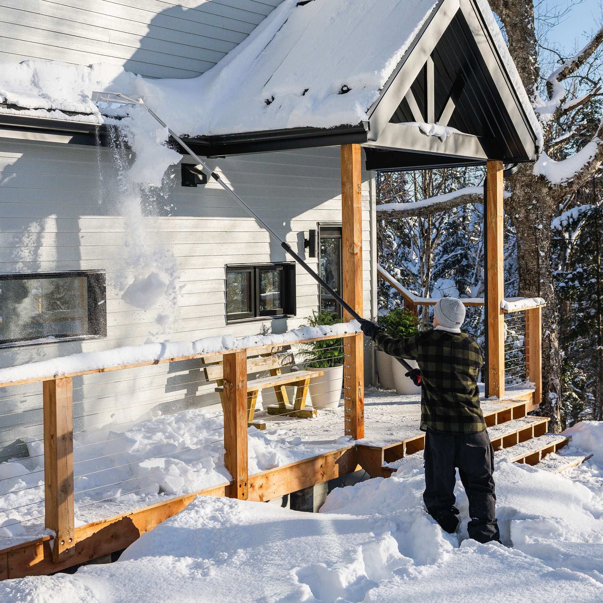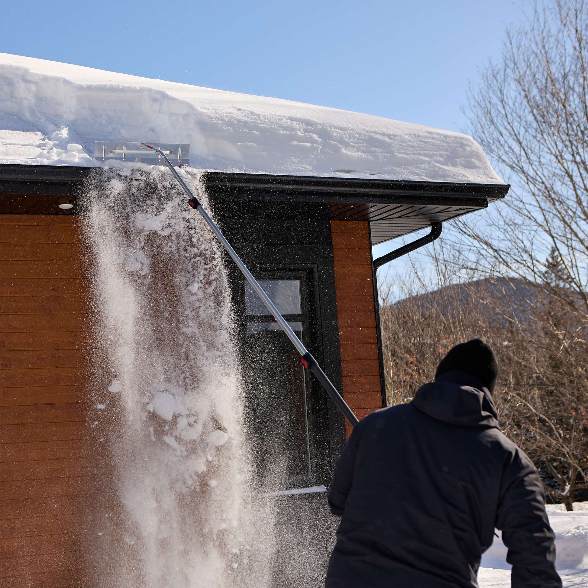 - Gratte à toiture sécuritaire - les patins protecteurs protègent les surfaces et laissent une fine couche de neige sur le toit