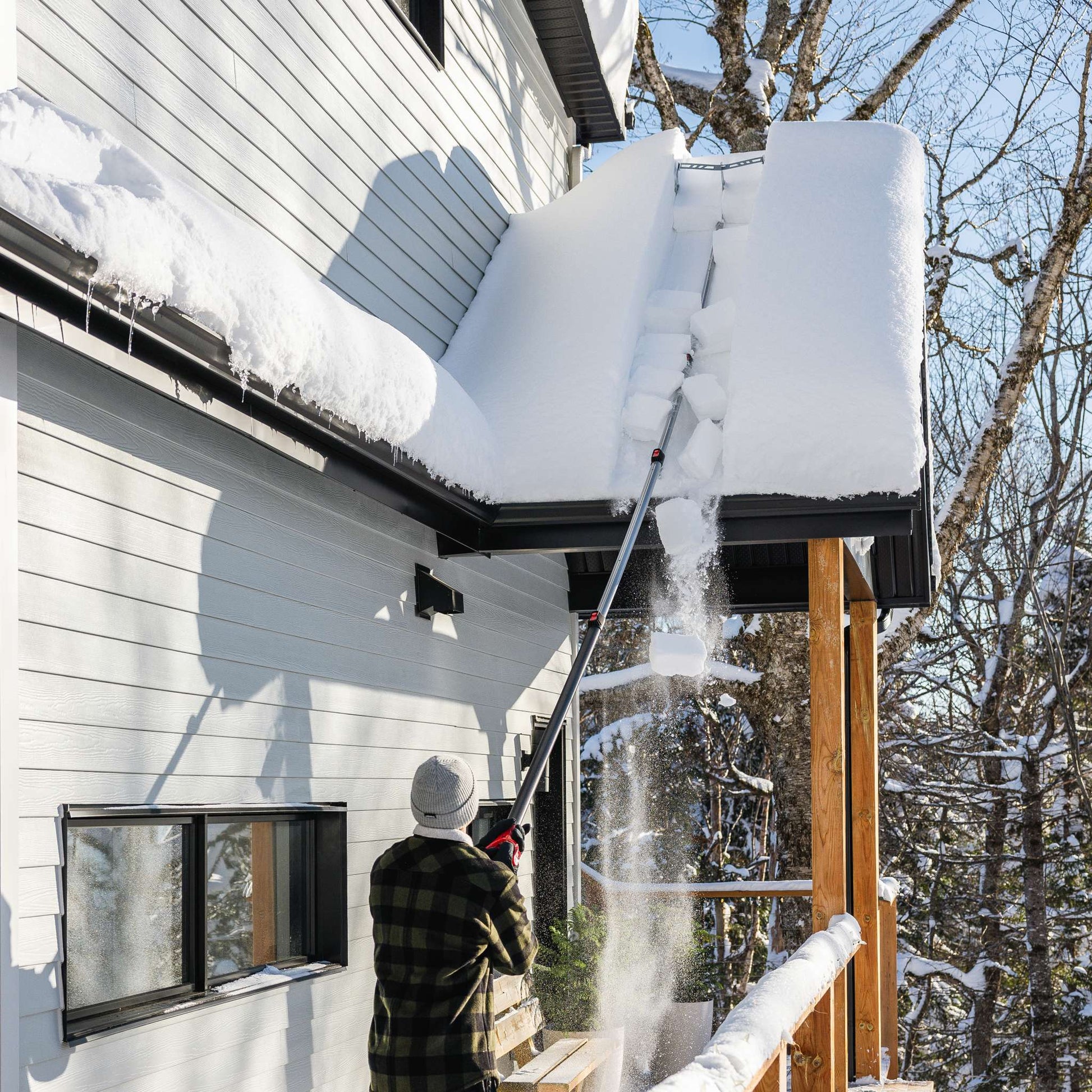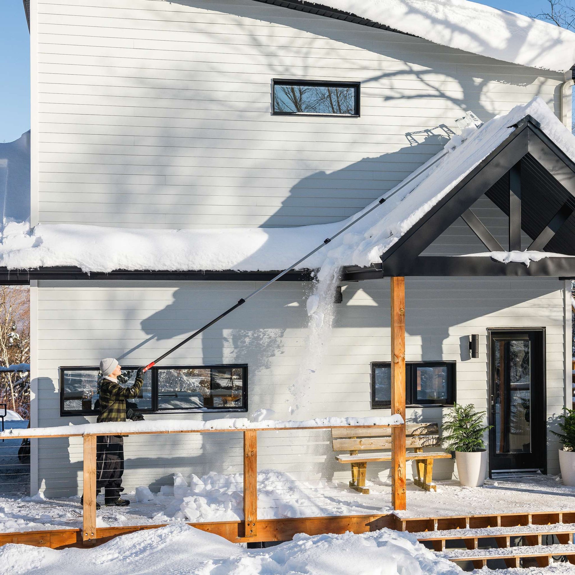 - Gratte à toiture sécuritaire - les patins protecteurs protègent les surfaces et laissent une fine couche de neige sur le toit