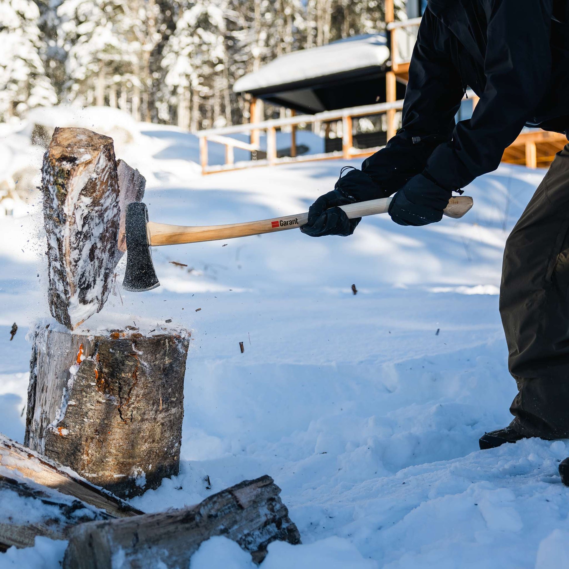 Fendez du bois de chauffage à l'aide de cette hache à fendre Garant. Cet outil de coupe est muni d'une tête de 8 lb au fini noir en acier forgé et trempé pour une solidité et une rigidité accrues. Le tranchant de la lame est aiguisé et offre une coupe franche. Son manche de 36 po (91,4 cm) en noyer verni absorbe bien les chocs. Elle peut être utilisée avec le coin à fendre. Pour ce faire, faites une encoche avec le taillant de la hache et utilisez le côté plat de la tête pour y enfoncer le coin. Cette hache est conçue pour les personnes qui désirent un excellent rapport qualité-prix.