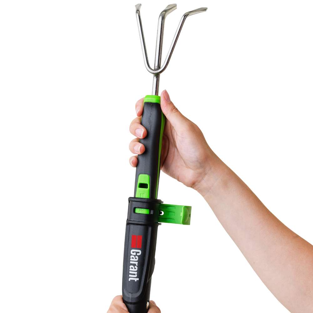 Le manche à outils interchangeables Garant est conçu pour fonctionner avec une gamme de têtes d'outils spécialement adaptées aux activités de jardinage, telles que le sarcloir, le balai à rocaille ou le coupe-bordure. Grâce à son système de fixation à raccord rapide, vous pouvez facilement changer d’outil en un seul clic, sans perdre de temps. Ce design innovant vous permet de passer d’une tâche à une autre avec fluidité, que vous travailliez dans des plates-bandes, des potagers ou d’autres zones de votre jardin.