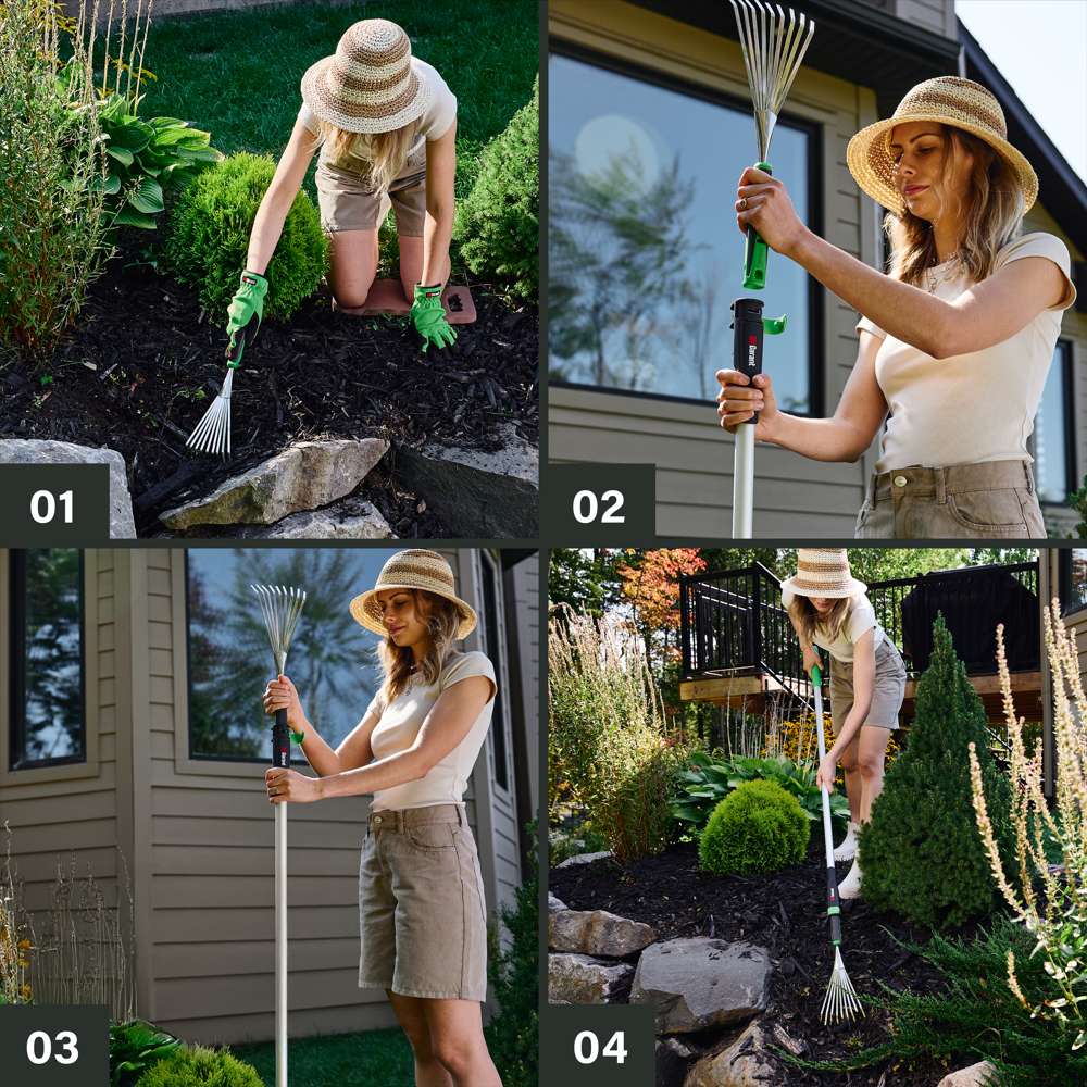 Avec ce manche, vous pouvez effectuer vos travaux de jardinage en position debout, réduisant ainsi la nécessité de vous accroupir ou de vous pencher. Ce système ergonomique offrant une expérience de jardinage plus agréable et moins fatigante, même lors de longues sessions.