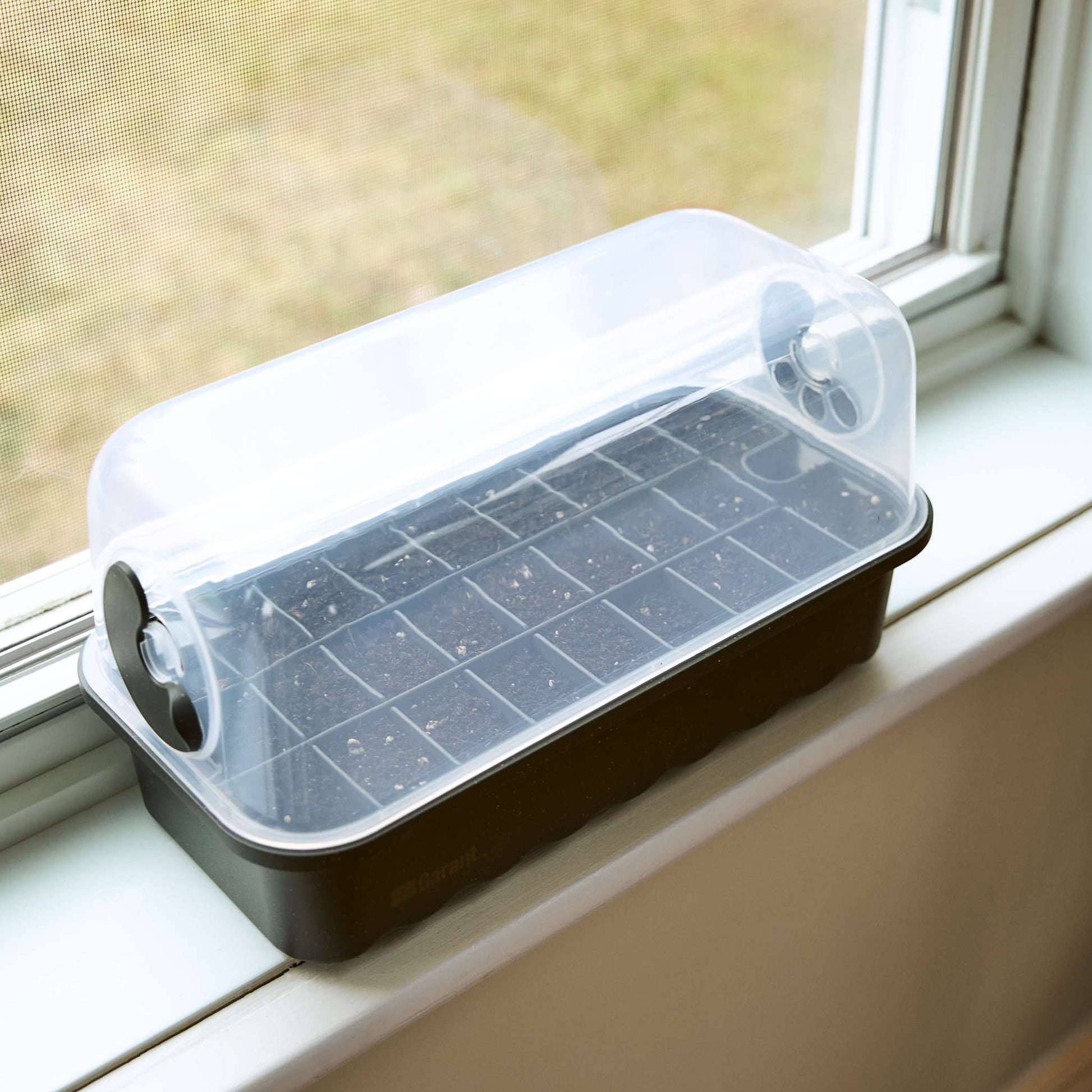 Doté d'un dôme avec système d'aération, il permet de contrôler l'humidité, assurant ainsi une germination plus rapide et efficace de vos semis. Il suffit de fermer les orifices à l'aide de la roulette sur le côté pour offrir plus d'humidité. Au fur et à mesure que les plants grandissent, vous pouvez augmenter la circulation d'air en tournant la roulette. Simple, mais ingénieux.