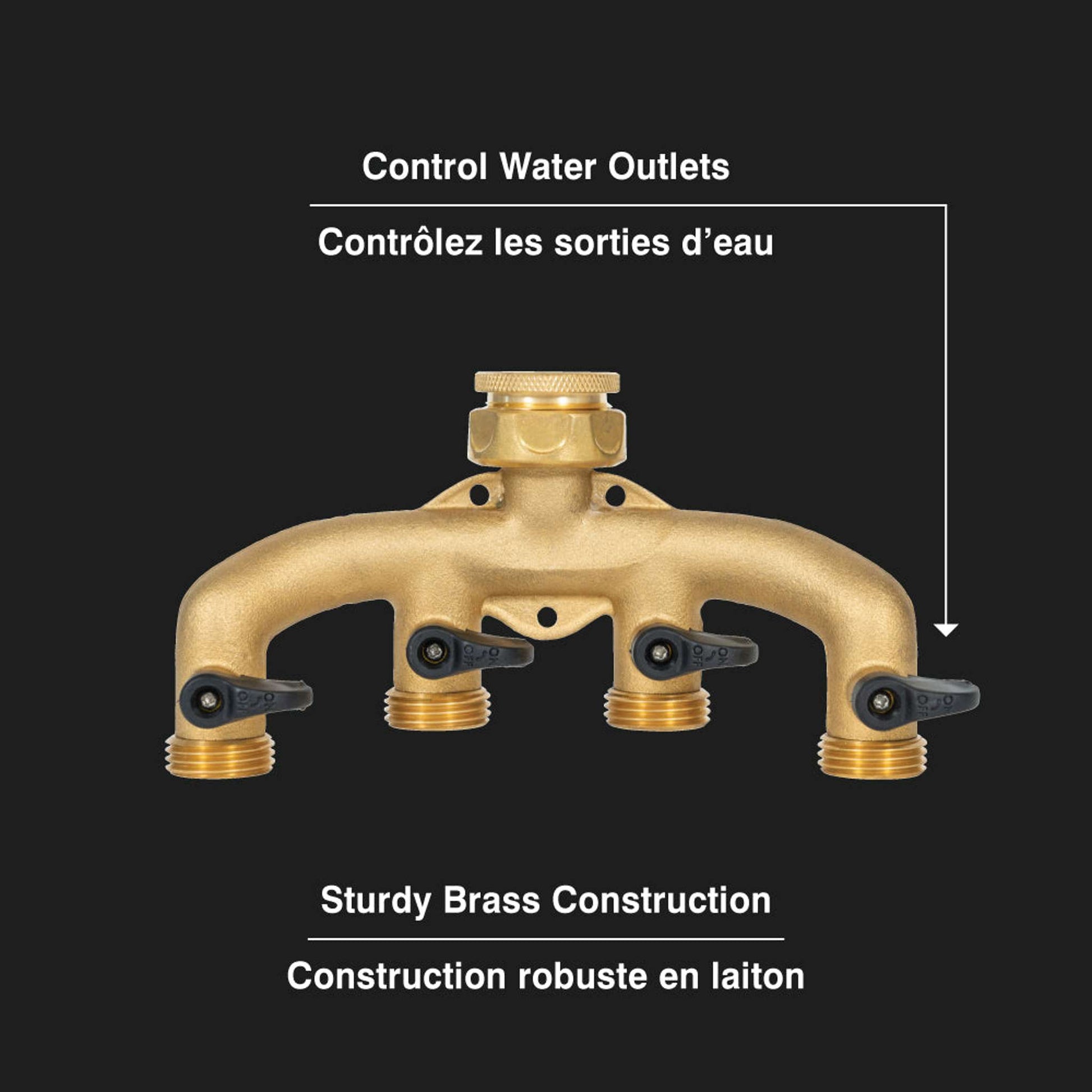 Le raccord de robinet quatre sorties en laiton Garant convertit un robinet en quatre tout en contrôlant les sorties d'eau indépendamment l'une de l'autre. Idéal pour utiliser plusieurs accessoires d'arrosage en même temps sans avoir à changer de tuyau au robinet. Sa construction en laiton robuste offre une durabilité supérieure en plus d'être résistante à la corrosion. Vissez-le au robinet, puis vissez l'adaptateur de robinet en laiton Garant sur chaque sortie d'eau, pour ensuite y raccorder facilement et rapidement vos tuyaux grâce au système de raccord rapide.Avec Garant, vos travaux d’arrosage n’auront jamais été si faciles !