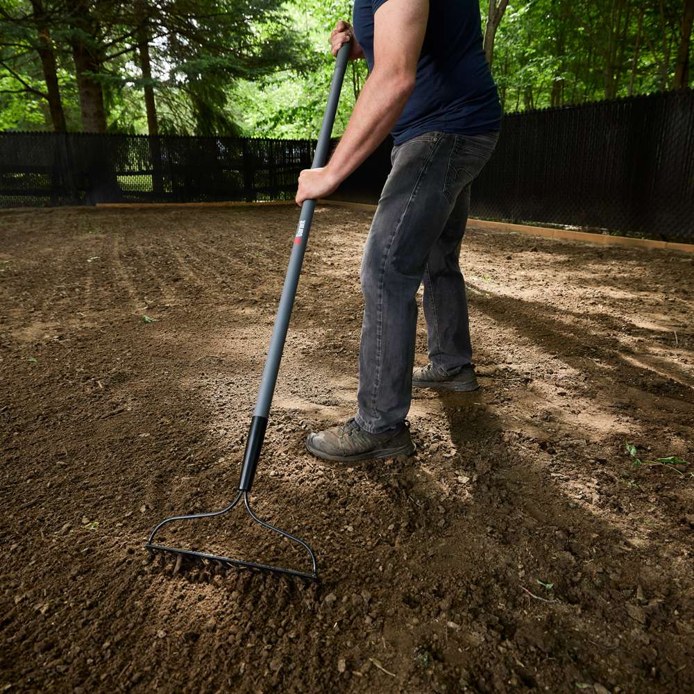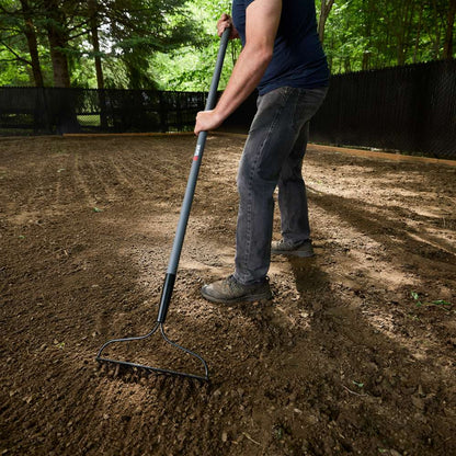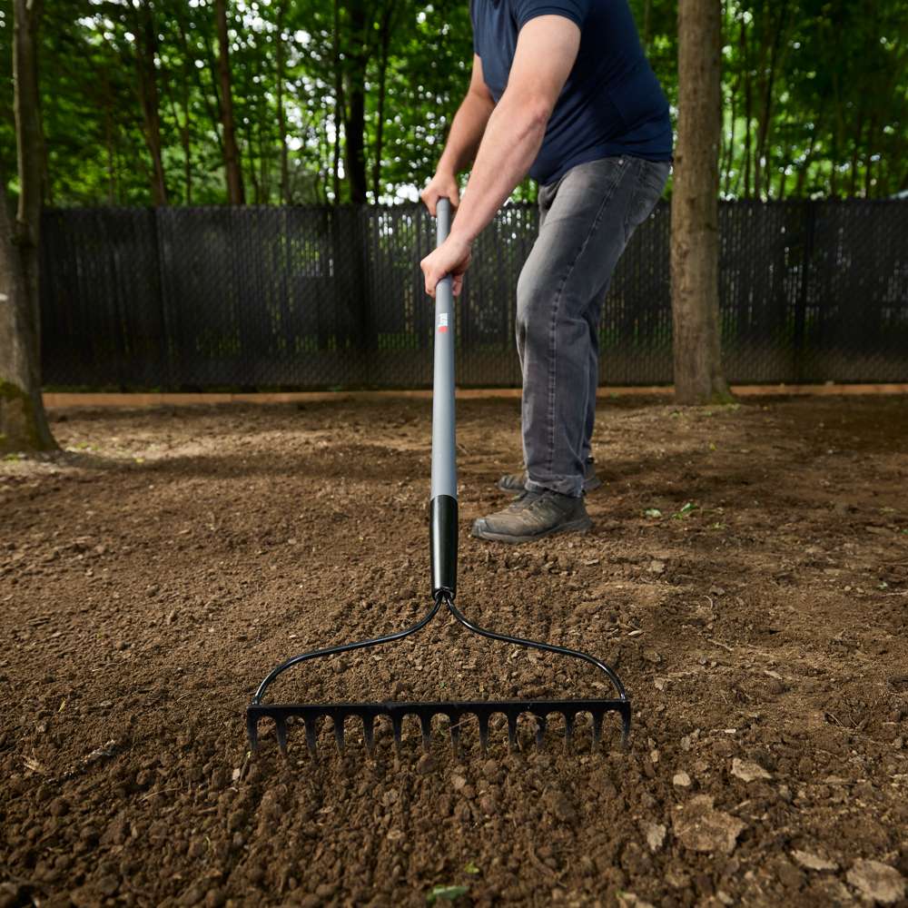 Le râteau à arceau Garant est un outil polyvalent et durable, conçu pour simplifier vos projets résidentiels. Que vous travailliez dans votre jardin, sur votre pelouse ou dans votre cour, ce râteau allie confort, robustesse et efficacité pour vous offrir des résultats impeccables. Le râteau à arceau Garant est doté d’un manche en fibre de verre, un matériau léger mais incroyablement résistant. La poignée ergonomique de ce râteau est équipée d’une poignée confortable, assurant une prise en main sûre et agréable. Que vous travailliez avec ou sans gants, cette poignée réduit les tensions sur vos mains et vos poignets, vous permettant de travailler plus longtemps sans inconfort. La tête en acier du râteau est conçue pour offrir une robustesse optimale. Grâce à sa finition émail cuit, elle résiste à la corrosion et aux rigueurs des travaux extérieurs. Les dents du râteau à arceau sont parfaites pour niveler le sol avec précision ou égaliser le matériaux comme le gravier ou le sable.