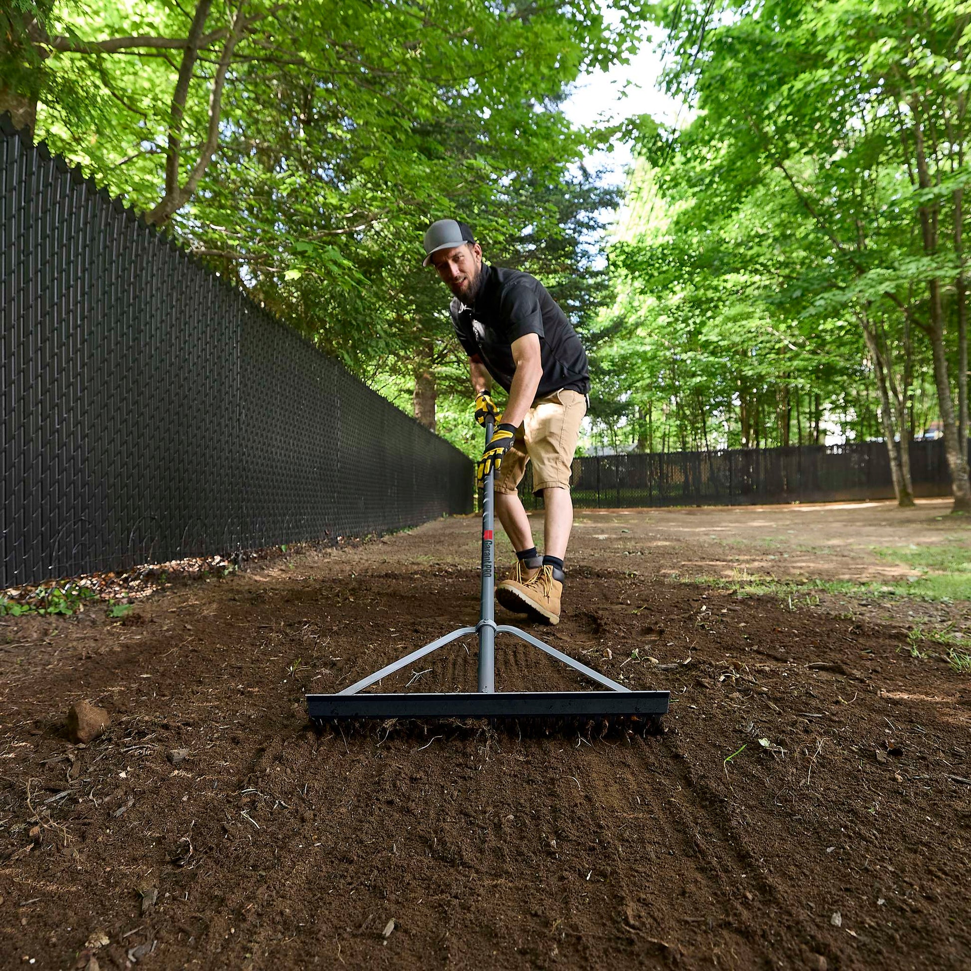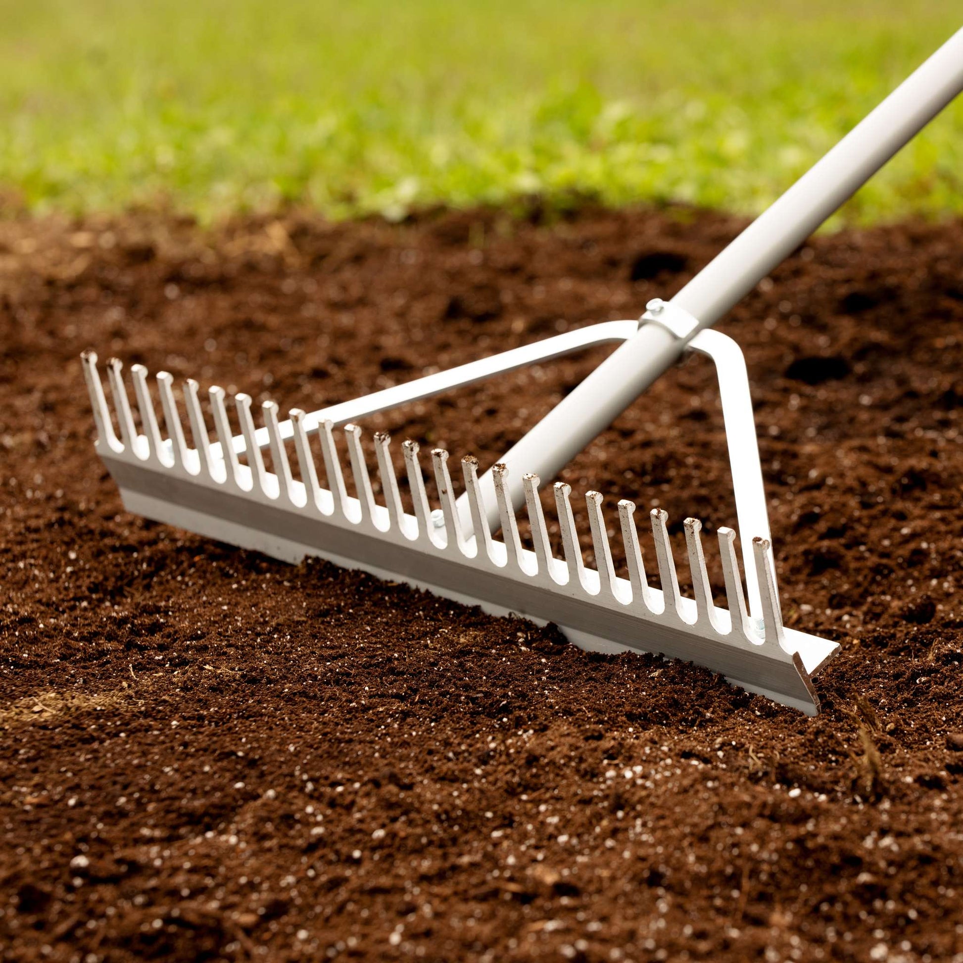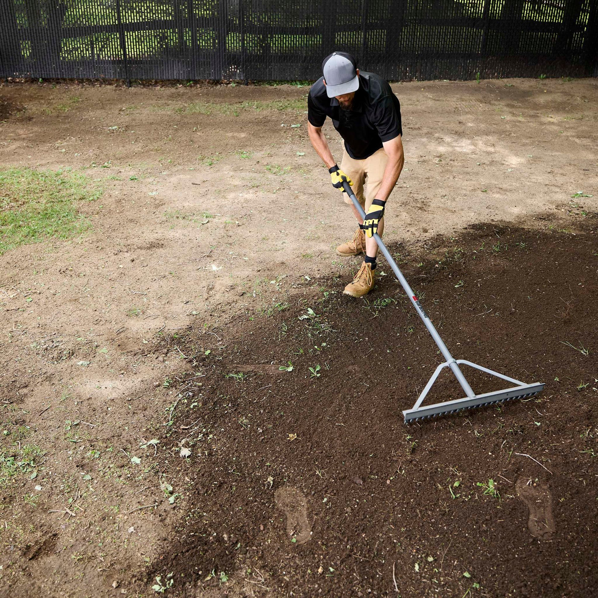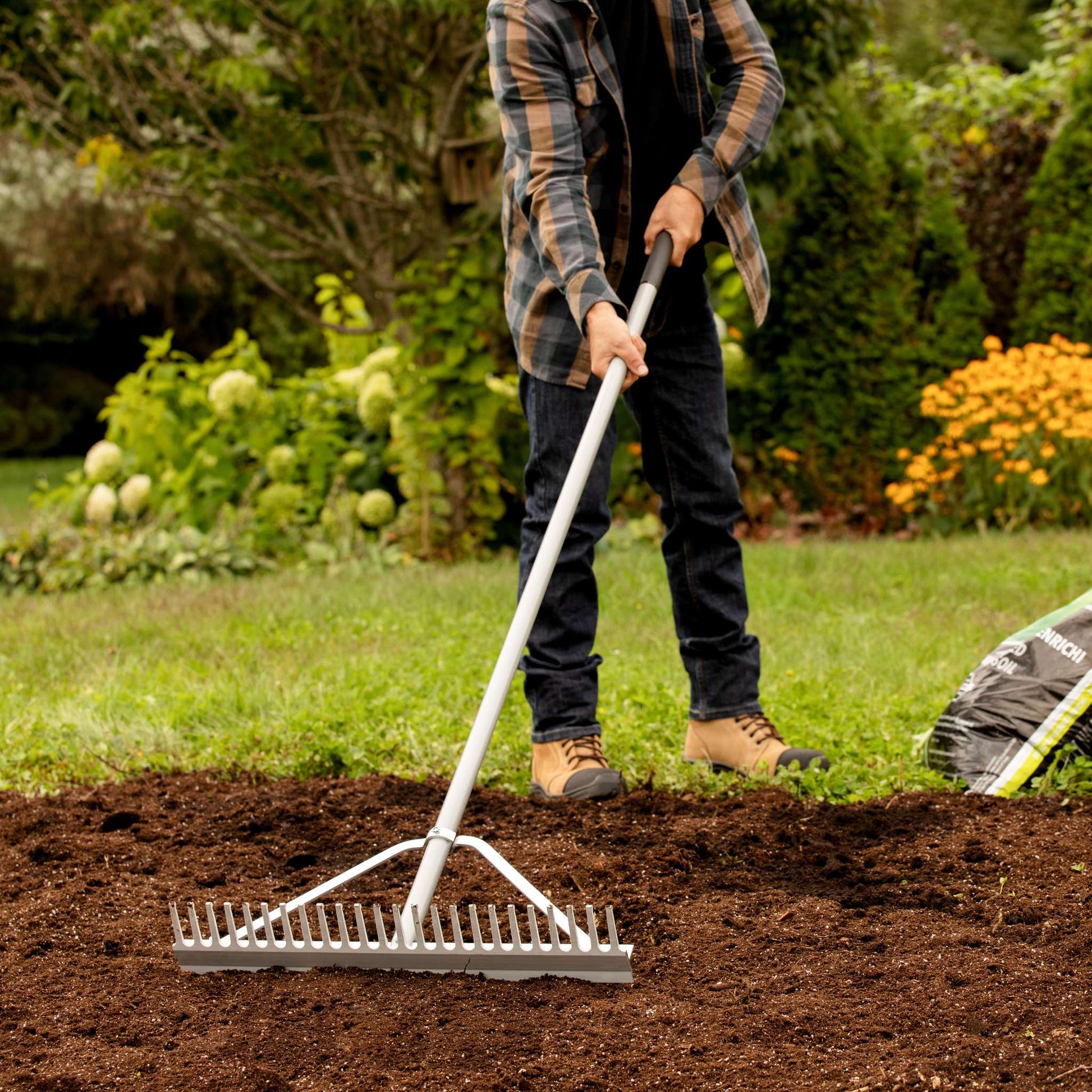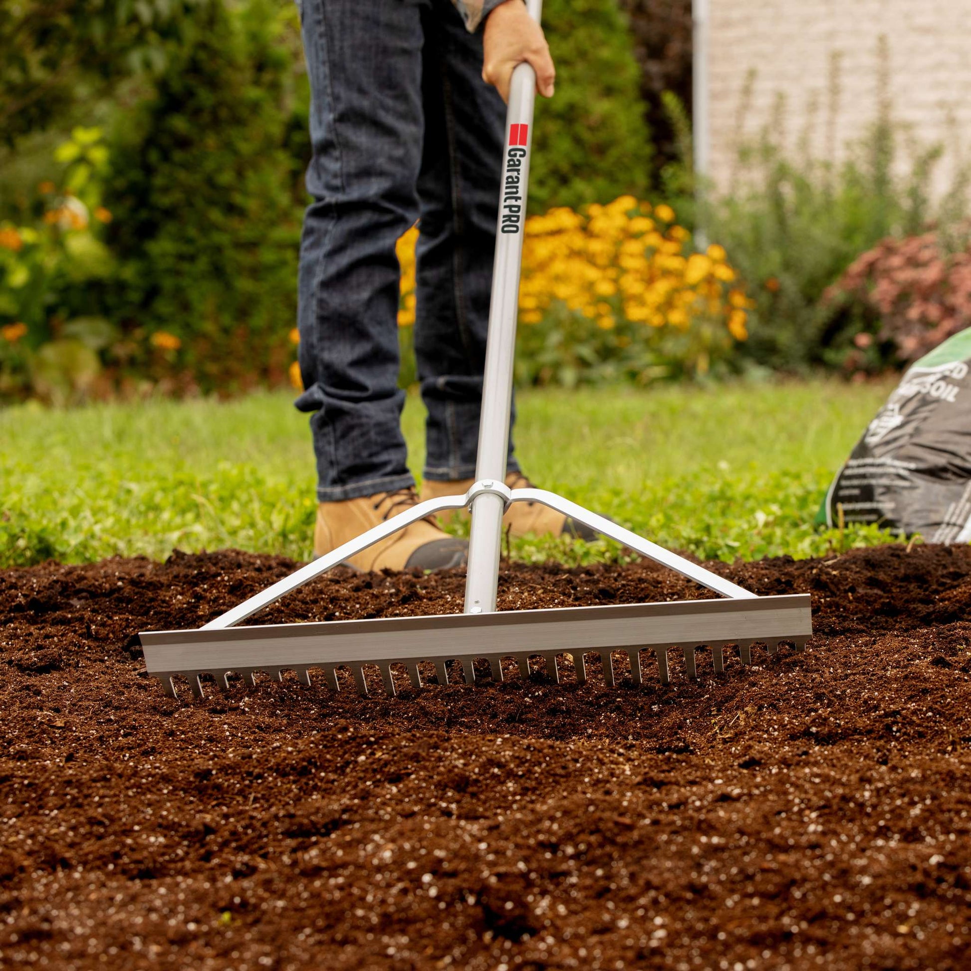 Le râteau à niveler 24 pouces Garant Pro de qualité industrielle permet d’atteindre les espaces restreints. Il est essentiel pour étendre la terre, ou encore niveler le sol dans votre jardin ou vos plates-bandes. Sa taille et son manche en aluminium procurent une légèreté et une précision optimales. Le râteau à niveler 24 pouces Garant est muni d’une prise confort antidérapante pour plus de confort et d’adhérence tout au long des travaux de terrassement.