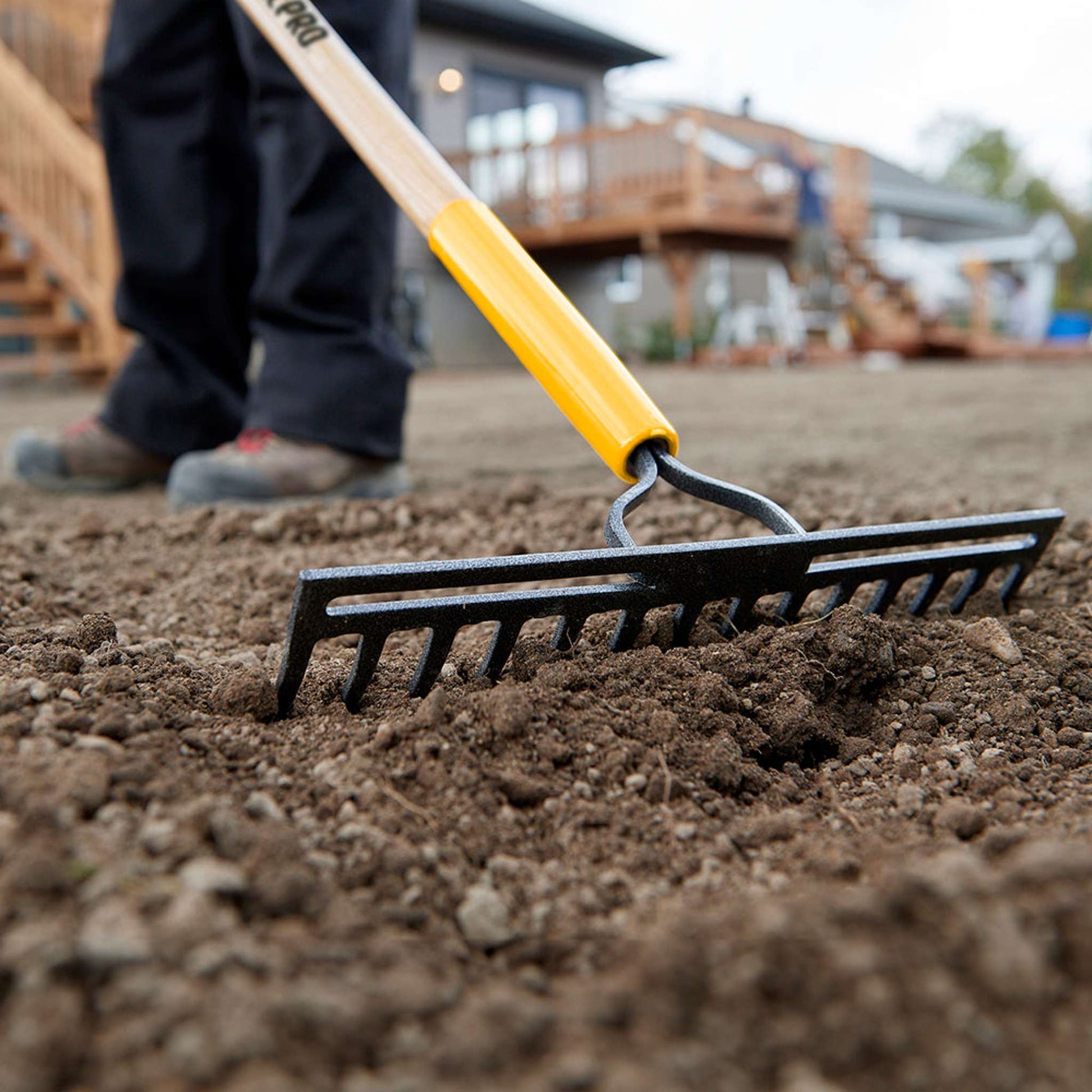 Étendez la terre et nivelez le sol dans votre jardin, vos plates-bandes ou autres à l'aide de ce râteau à niveler Garant Pro. Cet outil à 14 dents est équipé d'une douille surdimensionnée pour une robustesse et une performance optimales. Ce râteau à niveler de qualité industrielle a spécialement été conçu pour les professionnels qui désirent un outil robuste, fiable et efficace.