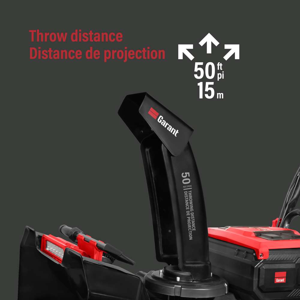 Projette la neige jusqu’à 50 pi (15 m) avec précision.